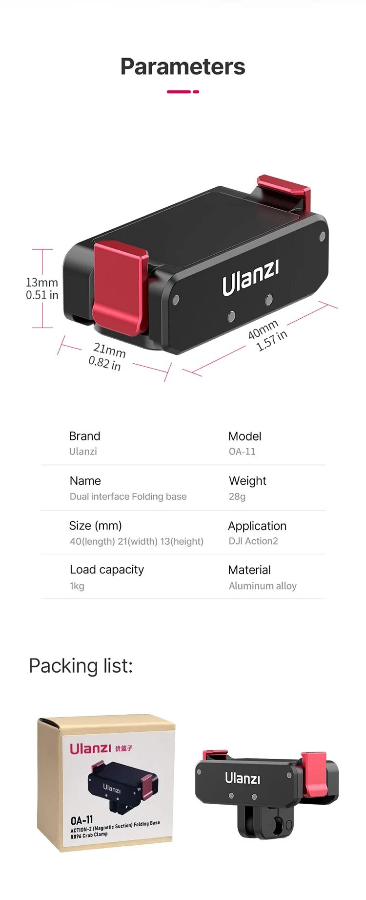 Зарядное устройство Ulanzi для DJI Action 5 4 3 2, OA-11