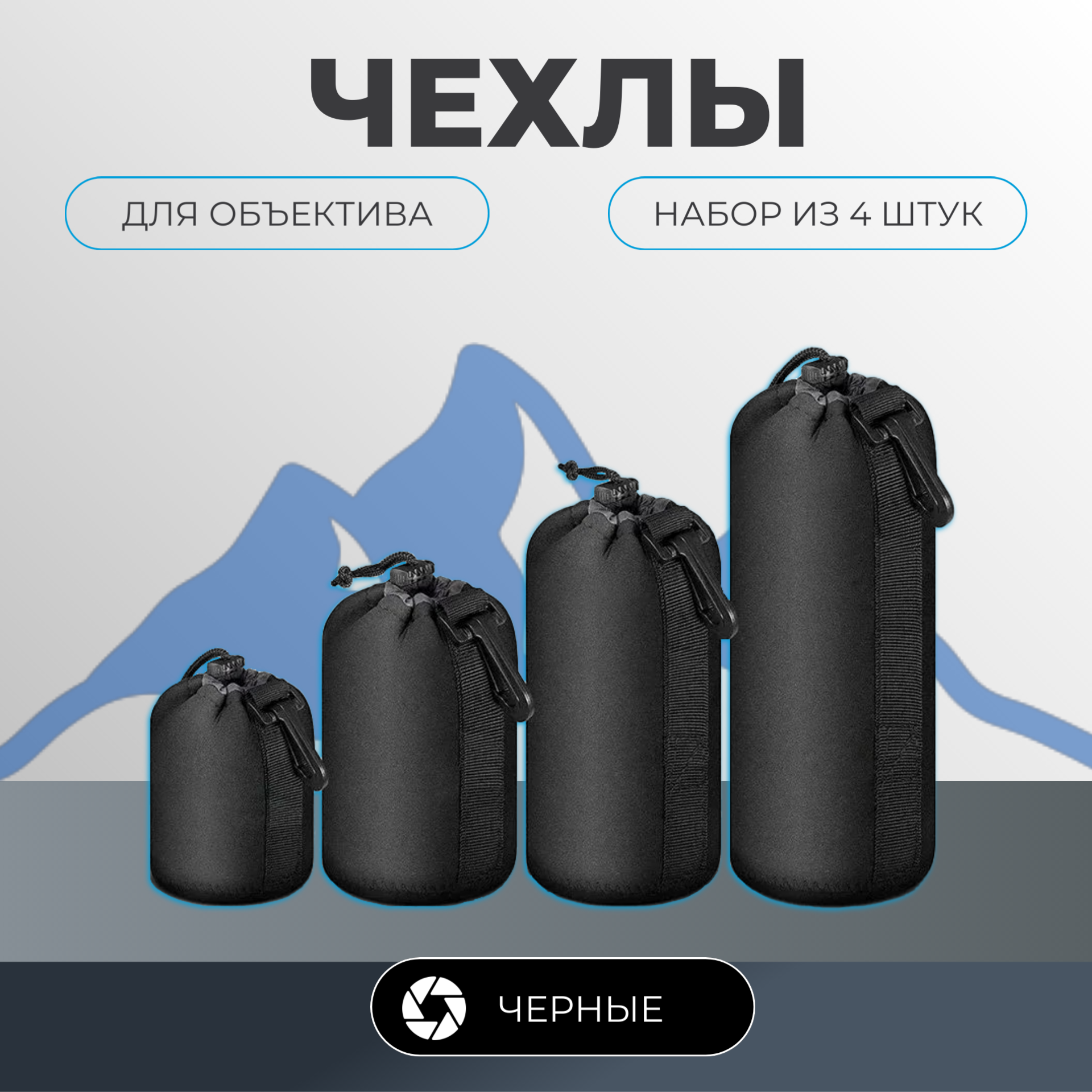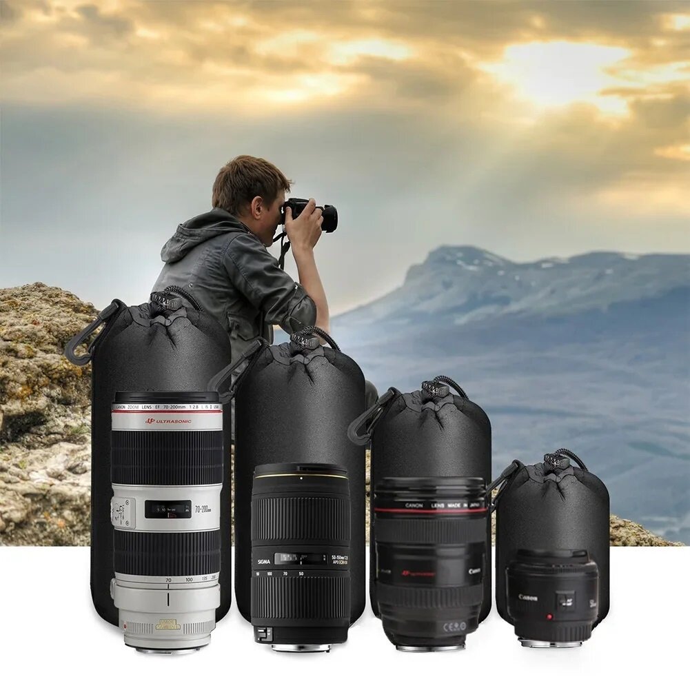 Чехлы для объектива, набор из 4 штук, черные / Неопреновый защитный кейс для объектива интересное: