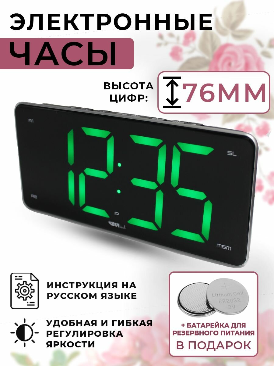 | Плюсы: | Только у нас цифры зеленые. Отличные часы для слабовидящих, огромные цифры, контраст |
