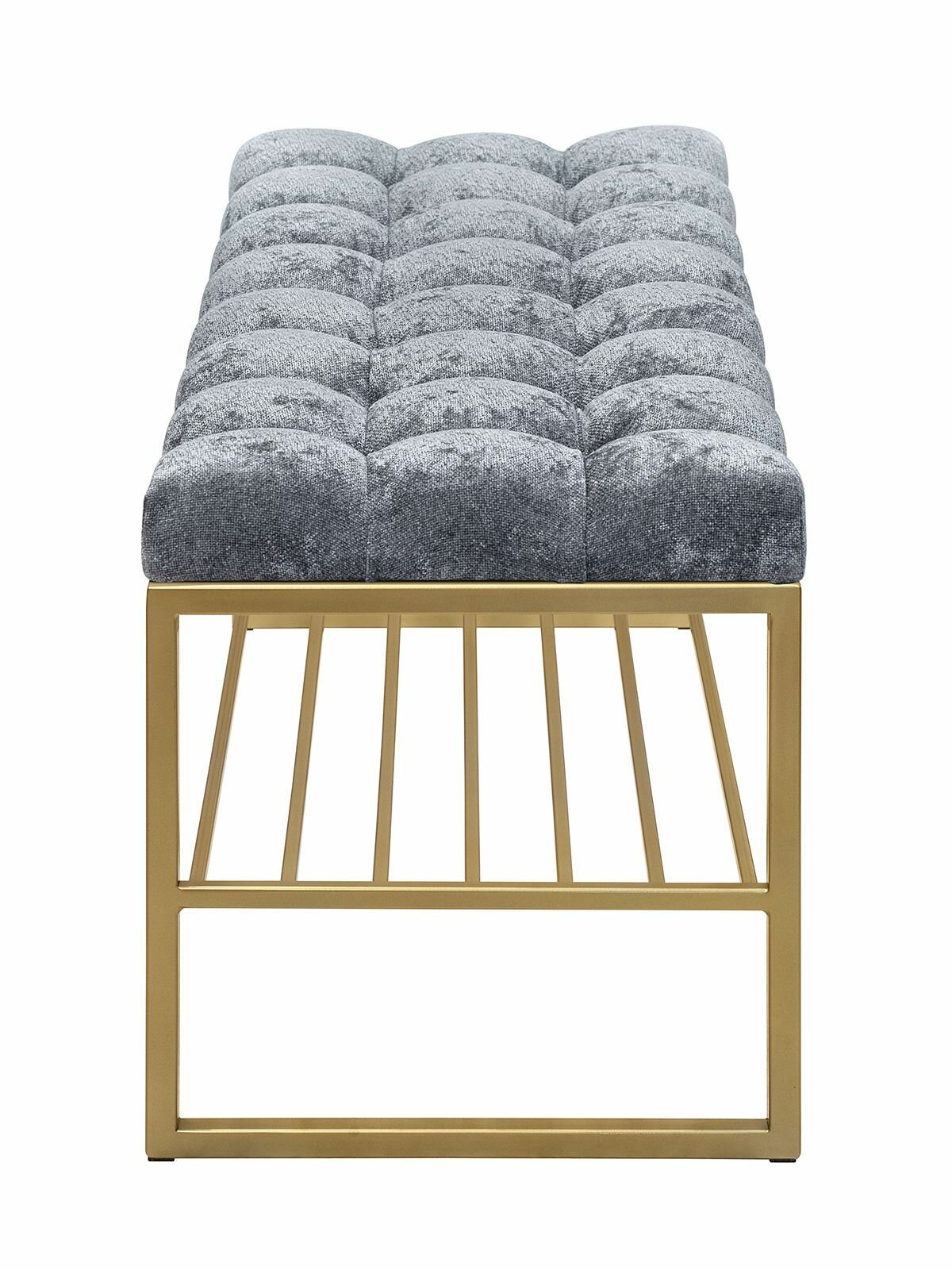 Банкетка RUBY, золотая, обивка Mouse Grey, каретная стяжка