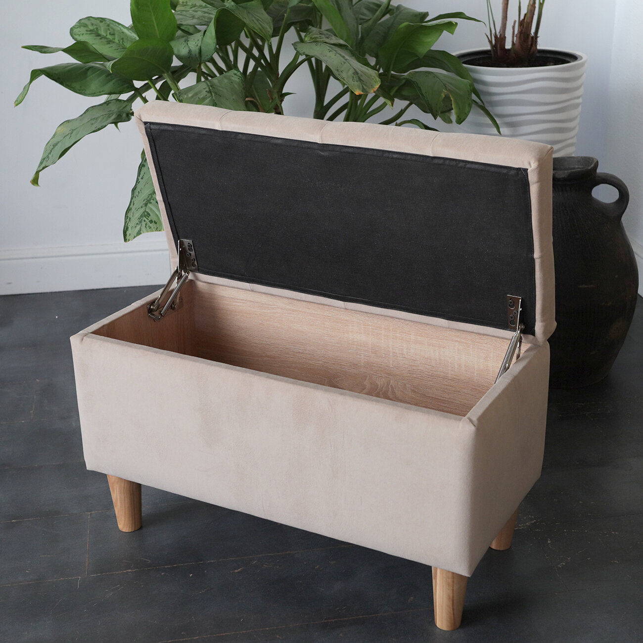 Пуфик-банкетка с ящиком хранения, 70х40х34 см, бежевый, ЛДСП, велюр, MisSofa