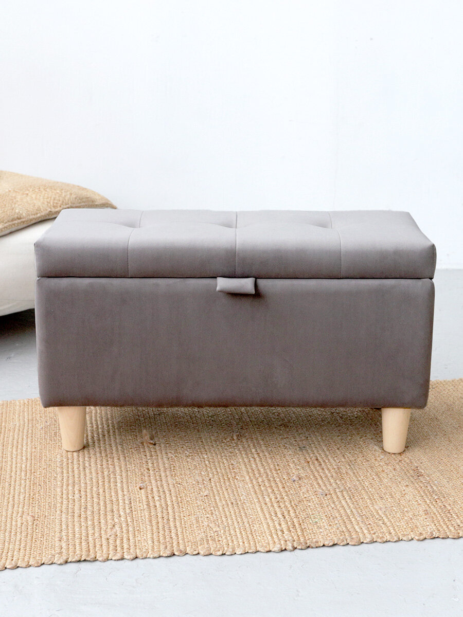 Пуф-банкетка с ящиком для хранения и обивкой из велюра, 70х40см, серый