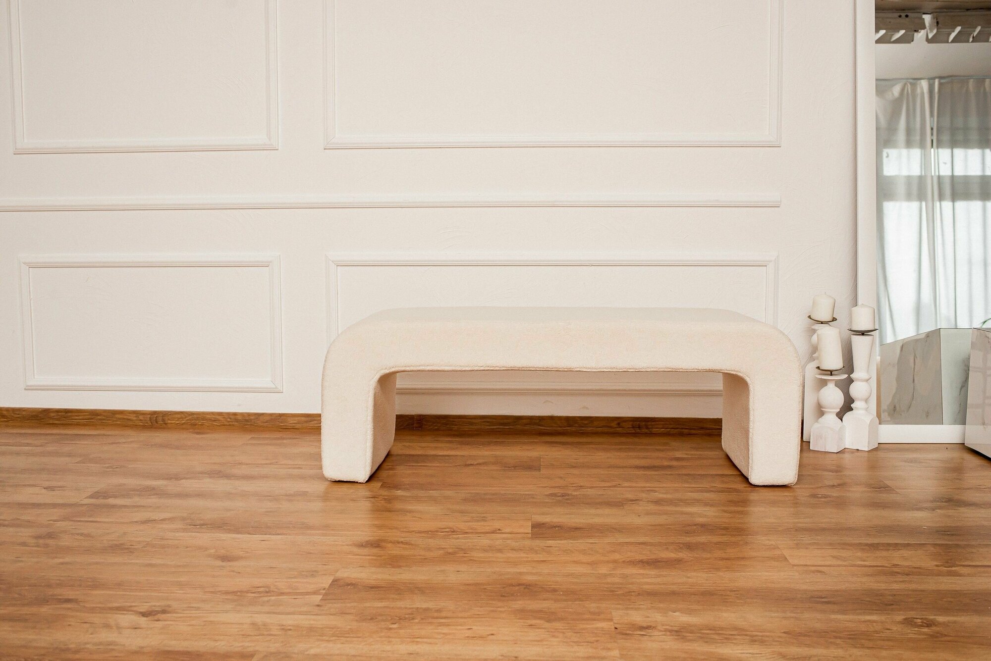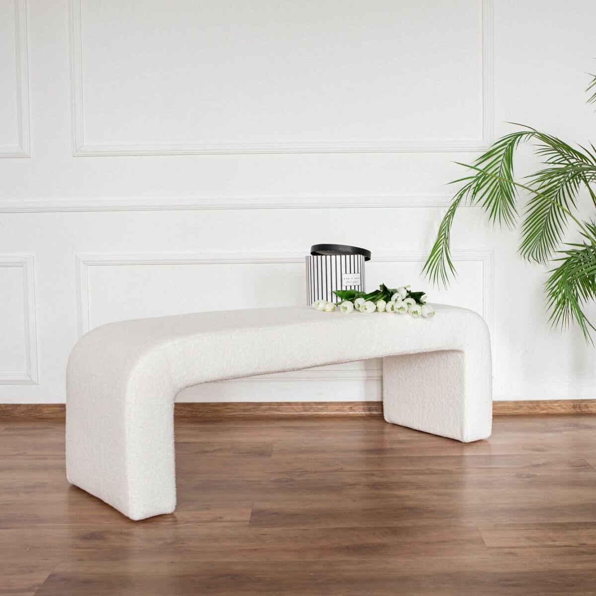 Купить Дизайнерская мягкая банкетка пуф в прихожую, спальню и гостиную Омега . Белый Оникс