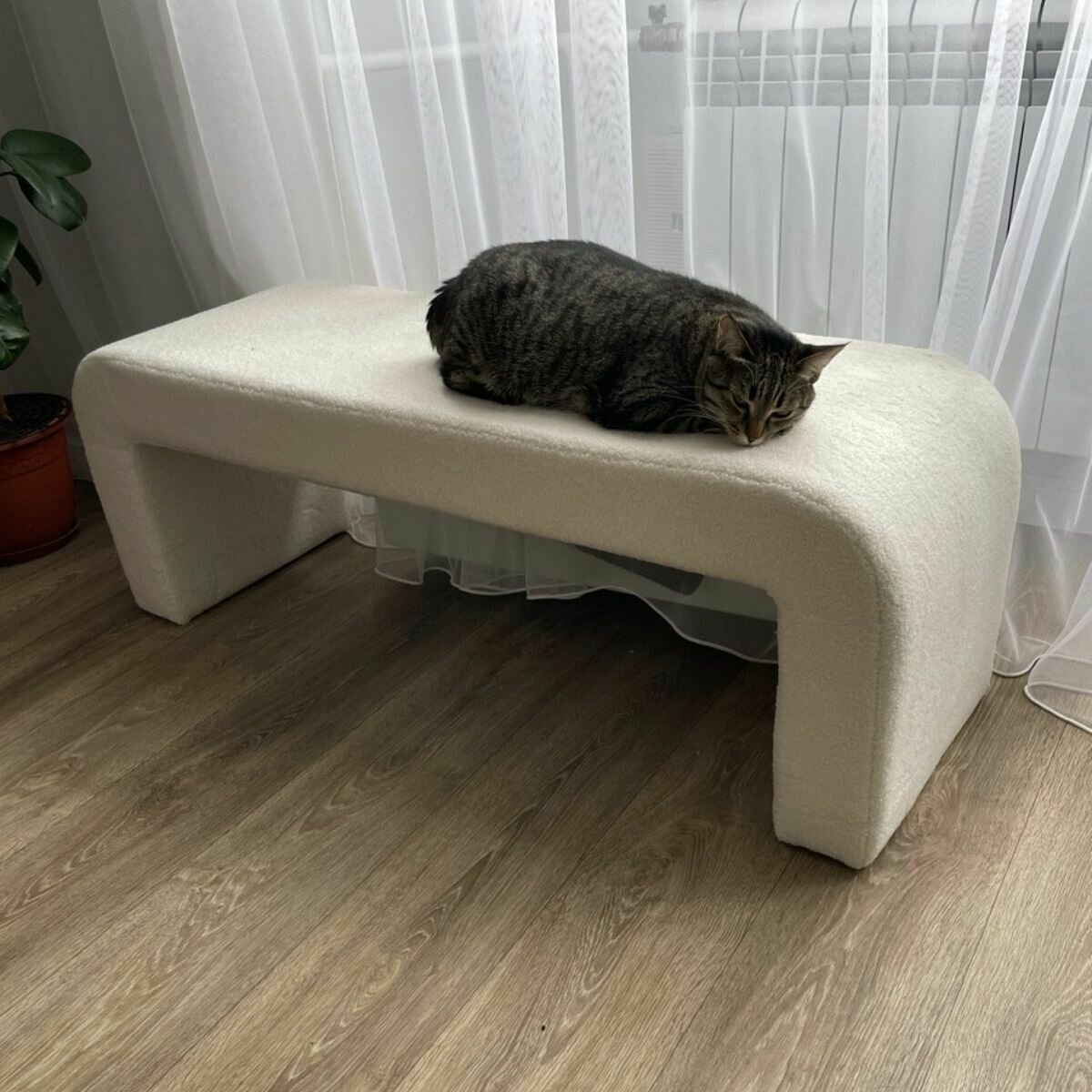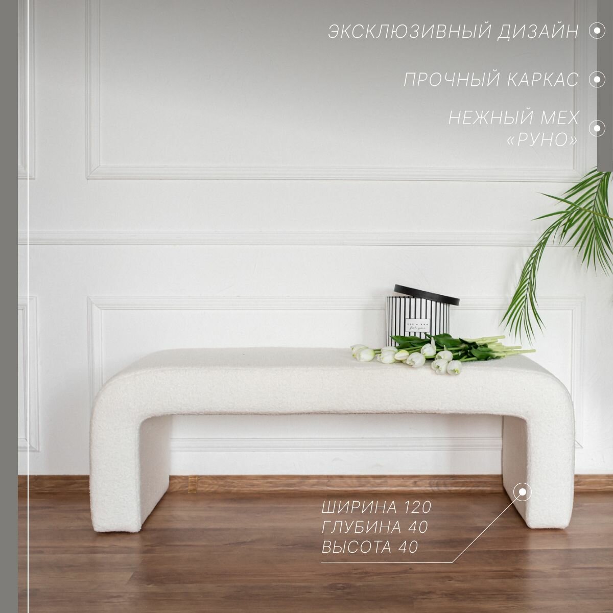 Дизайнерская мягкая банкетка пуф в прихожую, спальню и гостиную Омега . Белый Оникс интересное: