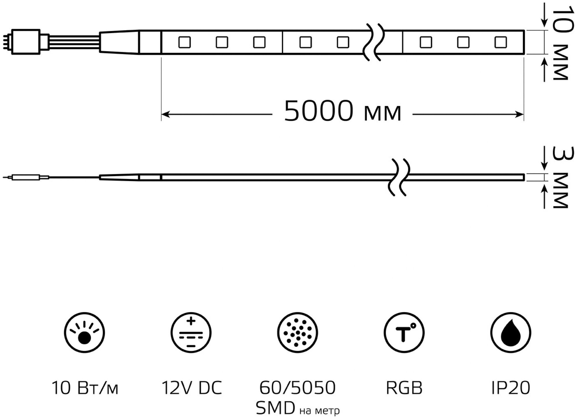 | Особенности | RGB-контроллер в комплекте / самоклеящаяся основа |