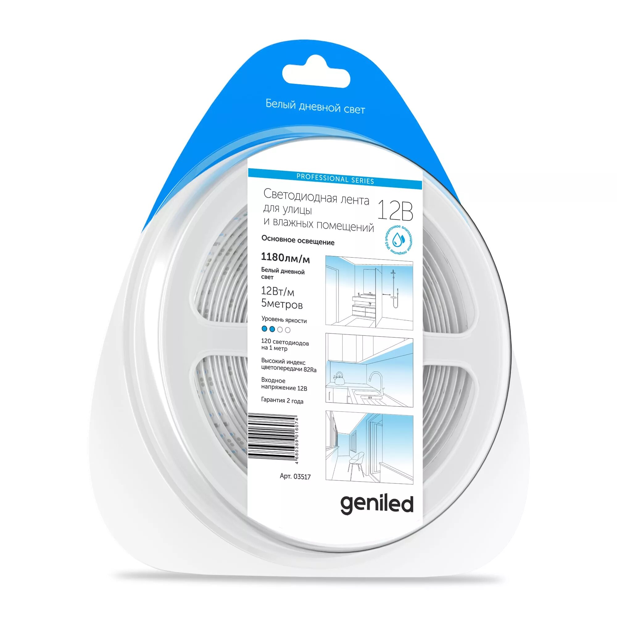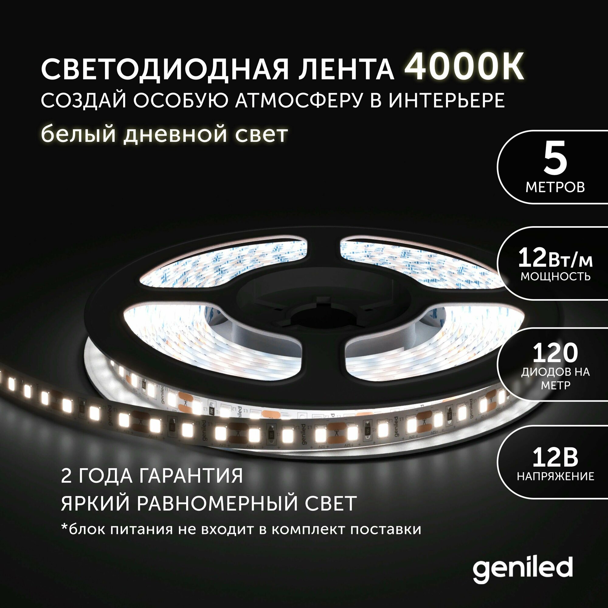 Светодиодная лента Geniled 2м 12В 12Вт/м 4000К IP33 нейтральная дневная подсветка 120 led/m 03581