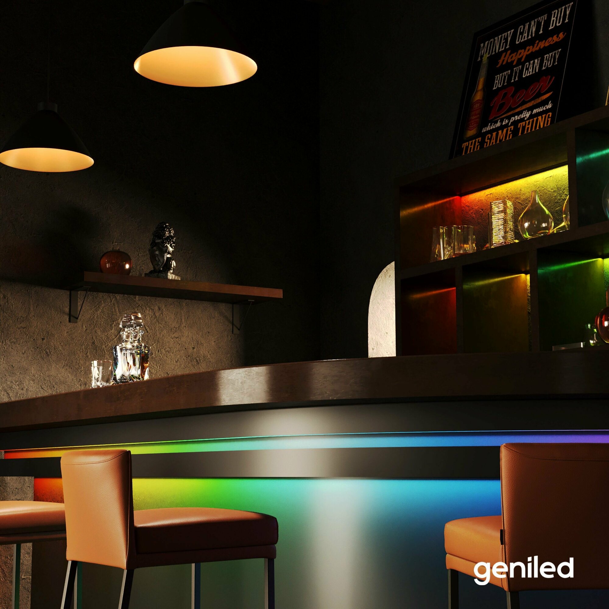 Светодиодная лента, подсветка Geniled - для комнаты, в гардероб, на кухню - Цветная+Белый свет (RGBW) GL-60SMD5050 / 24В / Длина - 5м / B - 12 мм / W - 14,4 Вт / 4000 К / IP33