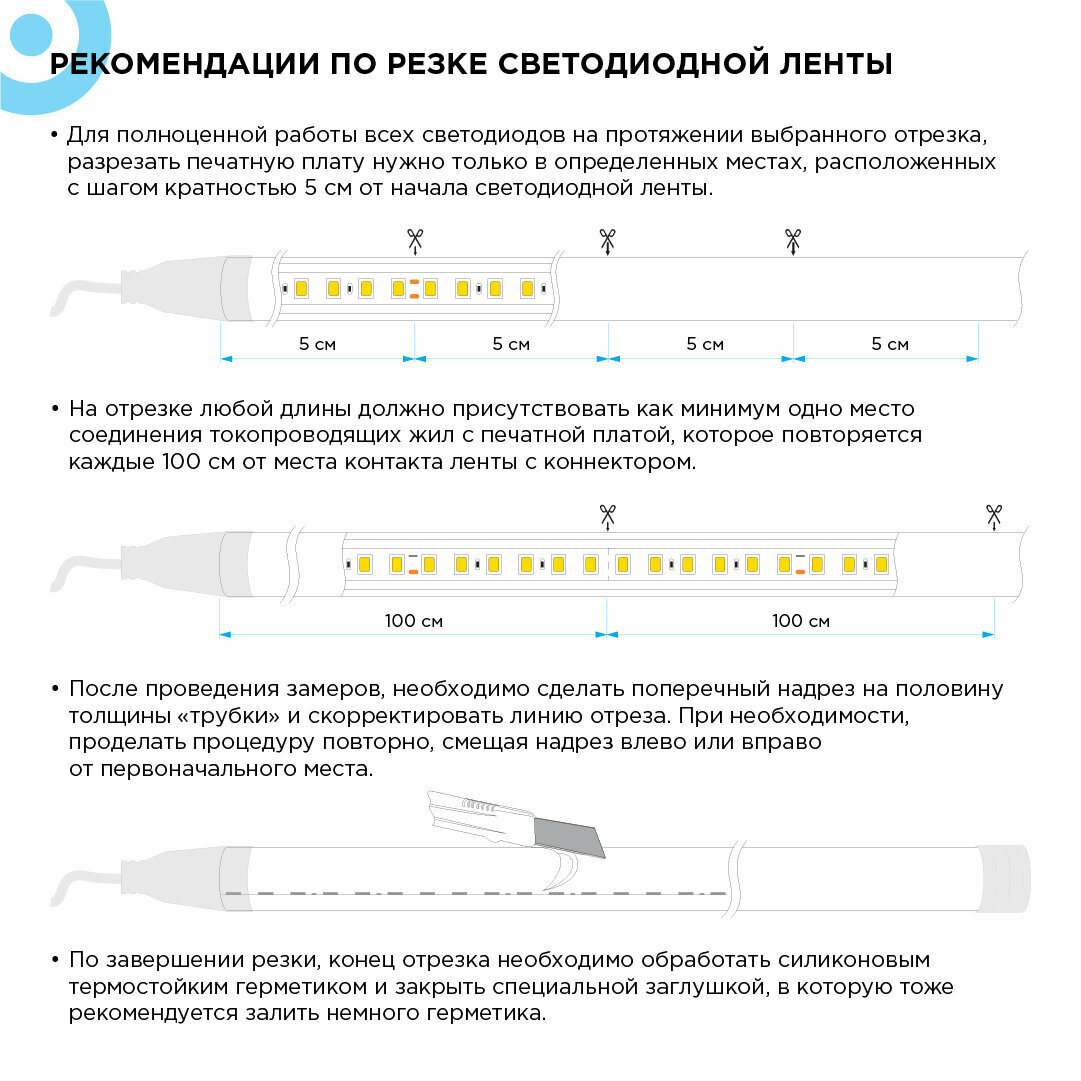 | Комплектация | светодиодная лента 5 м, крепеж 10 шт., заглушки 2 шт. в сборе +1 шт. |