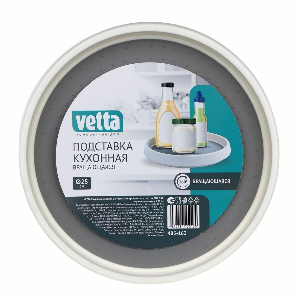 Ниже Вы можете прочитать отзывы на Подставка кухонная универсальная вращающаяся d. 25 см VETTA, пластик, ознакомится с подробными характеристиками, посмотреть интересные обзоры и фотографии на Подставка кухонная универсальная вращающаяся d. 25 см VETTA, пластик.