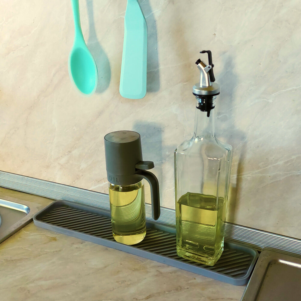 Купить Подставка силиконовая для хранения моющего средства и губки 41,5х9х1,3 см, серая