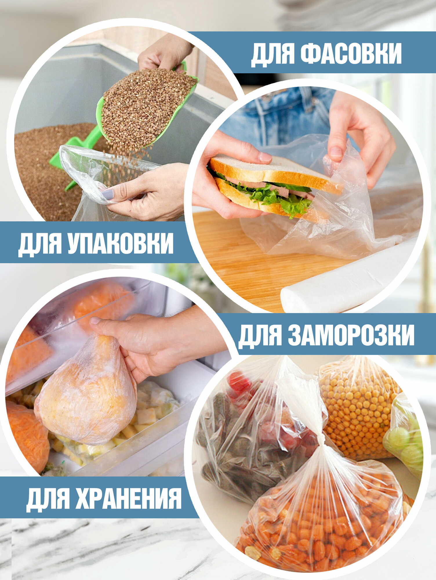 Пакеты для продуктов 25*32см набор 3*50шт (для завтрака) /полиэтиленовые упаковочные фасовочные