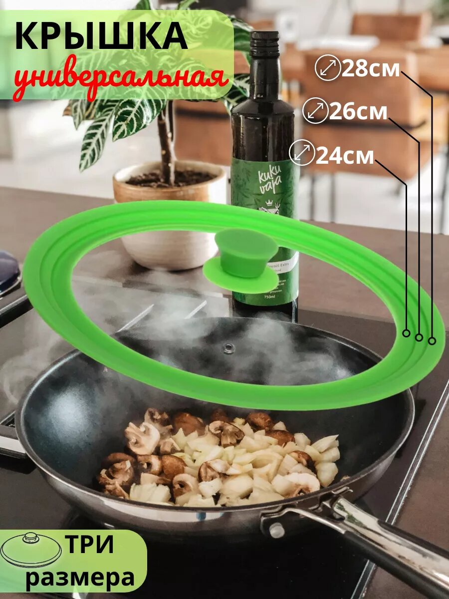 Купить Универсальная крышка для сковороды и кастрюли 3 размера (24, 26, 28 см), зеленый