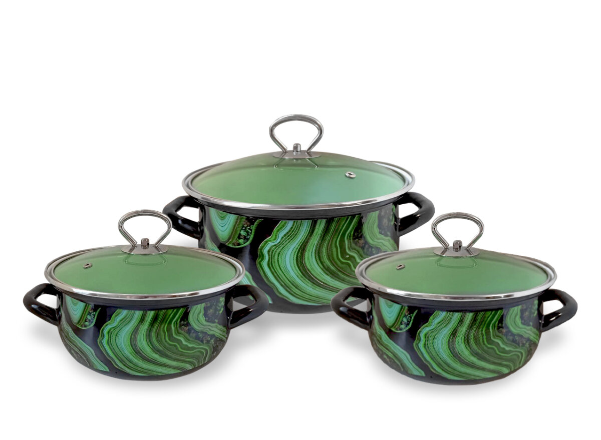 Набор кастрюль Керченский МЗ Малахит-1-Экстра, 3 шт, эмаль, черный