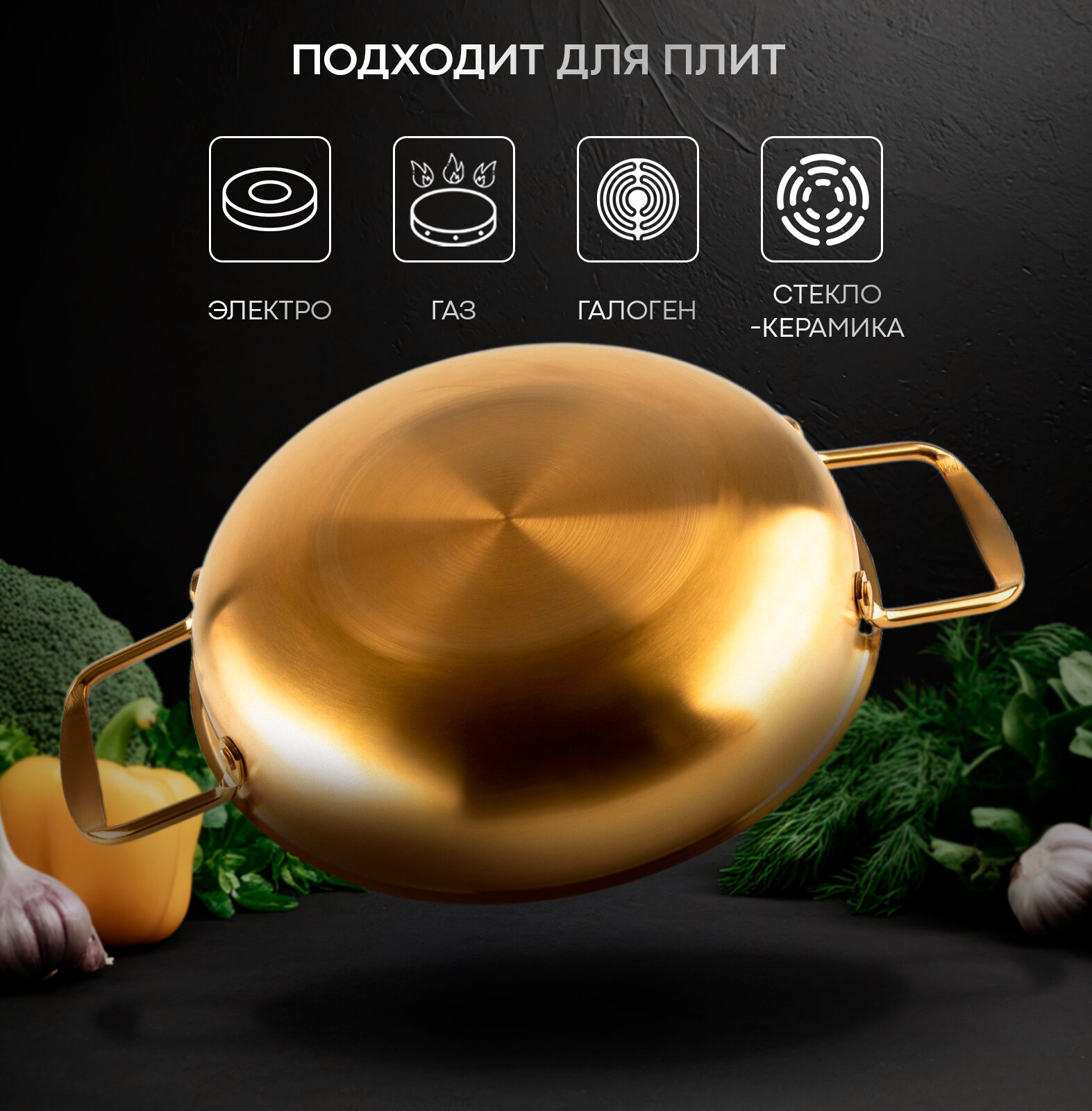 Сотейник, d=26 см, h=6 см, толщина 1 мм, 201 сталь, цвет золотой