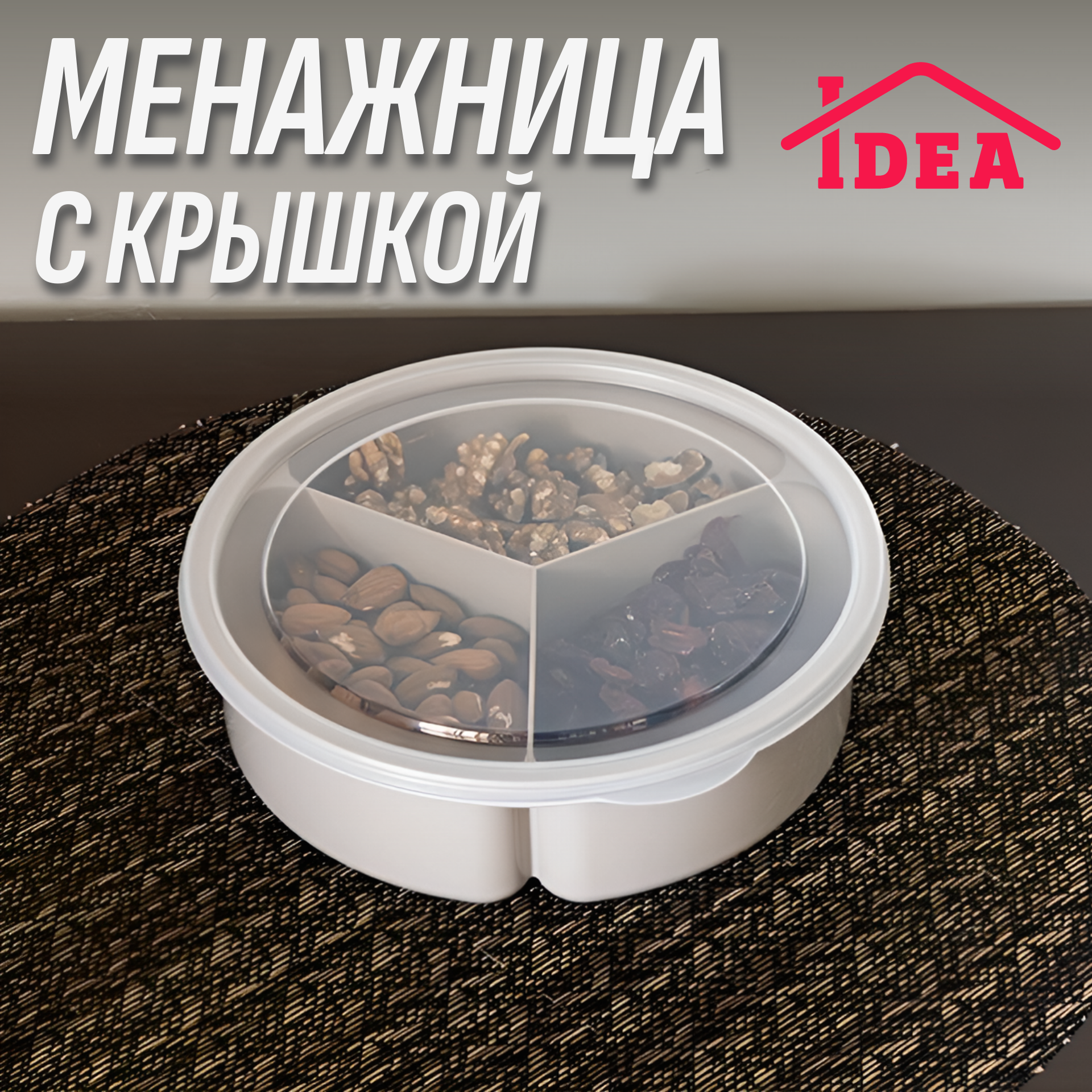 Менажница с крышкой, 3 секций, цвет капучино, сервировочная тарелка для завтрака и закусок, тарелка для подачи, сервировочное блюдо, контейнер для еды круглый с разделителями