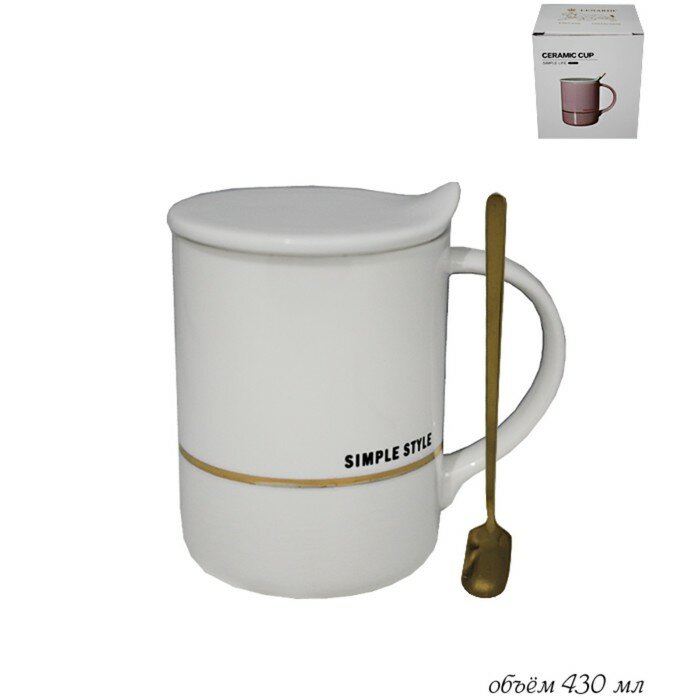 Купить Кружка с крышкой и ложкой Lenardi 430мл, фарфор, металл