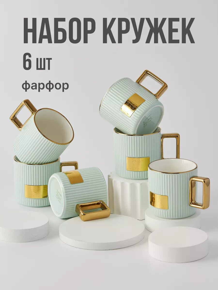 Набор из 6 кружек, 300 мл. Lenardi. Твердый фарфор, в подарочной упаковке.