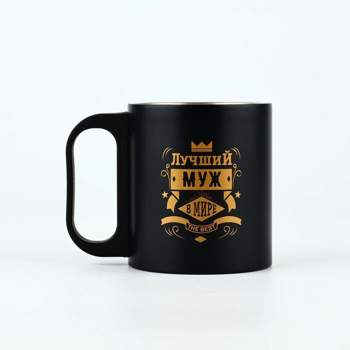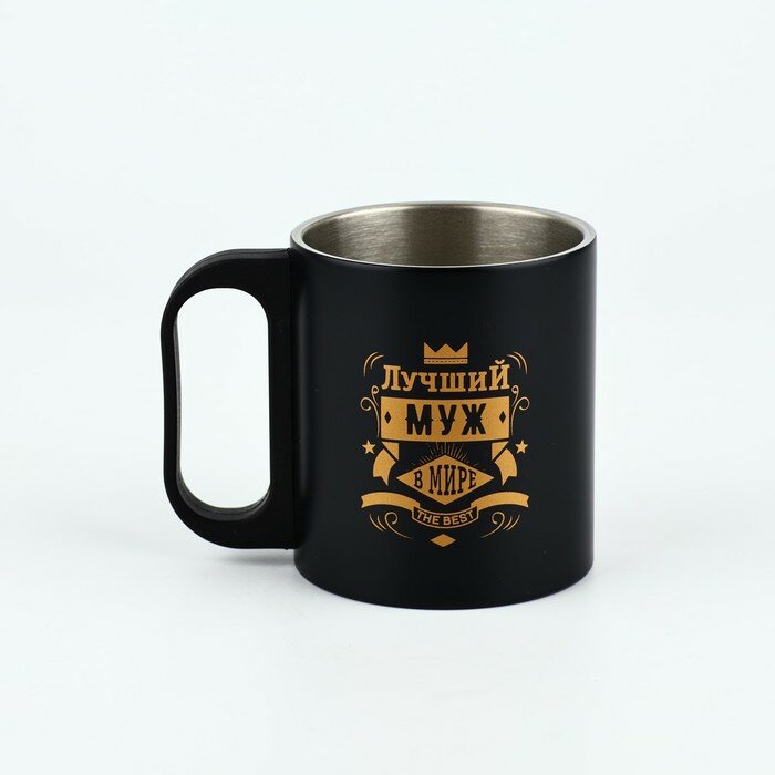 Термокружка черная «Лучший муж в мире», пластиковая ручка, 170 мл, на подарок к 23 февраля. интересное: