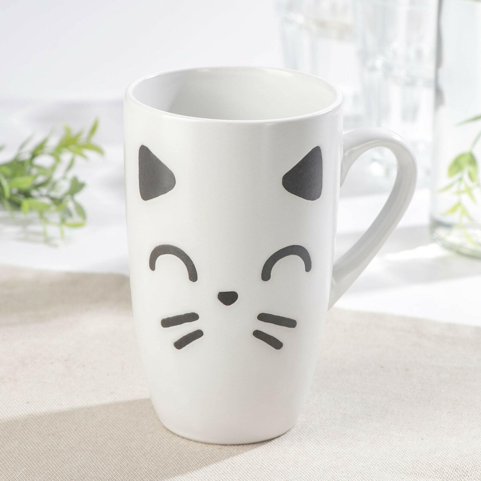 Кружка керамическая Доляна «Кот белый», 400 мл, цвет белый