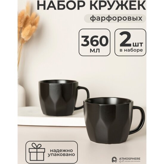 Набор кружек фарфоровых Geometry Black, 360 мл, 2 шт, Atmosphere of art .