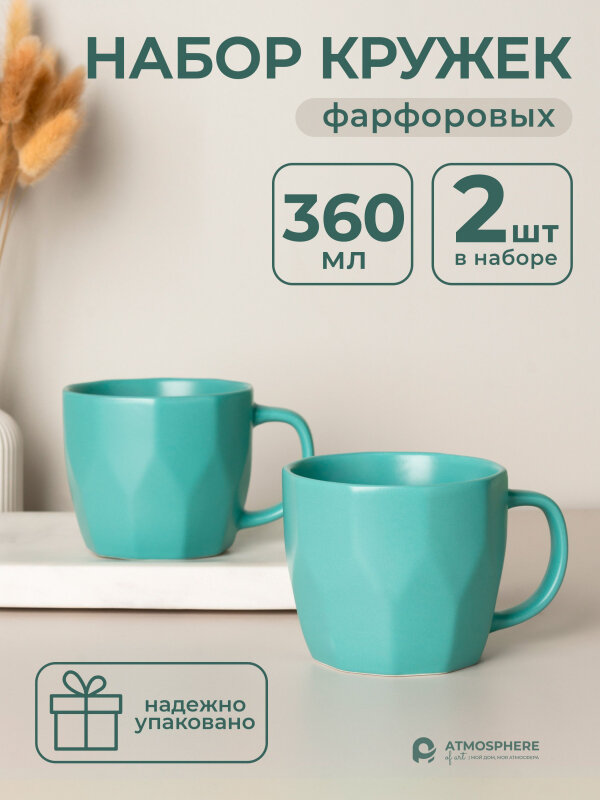 Набор кружек фарфоровых Atmosphere, 360 мл, 2 шт, зеленый