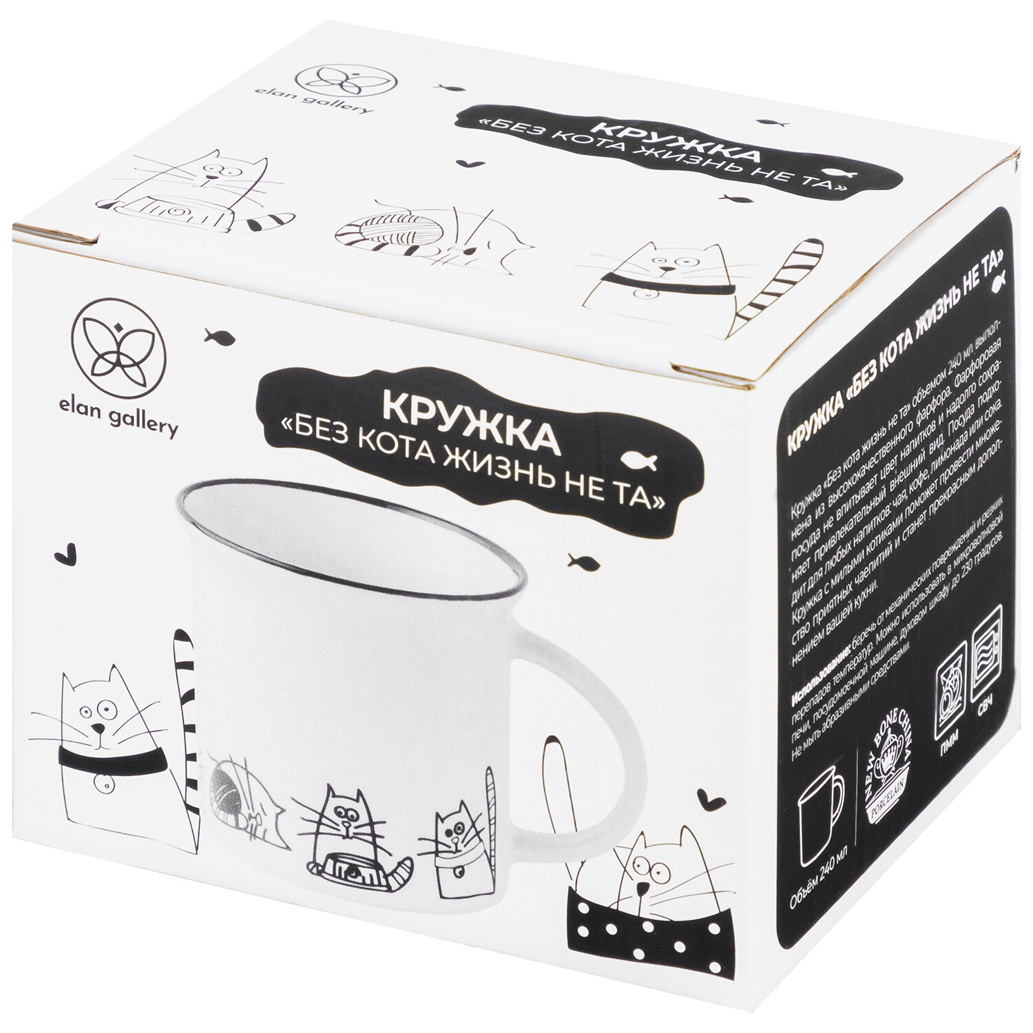 Кружка, чашка для чая, кофе 240 мл Elan Gallery "без кота жизнь НЕ ТА", 10,3*7,1*7,5 см интересное: