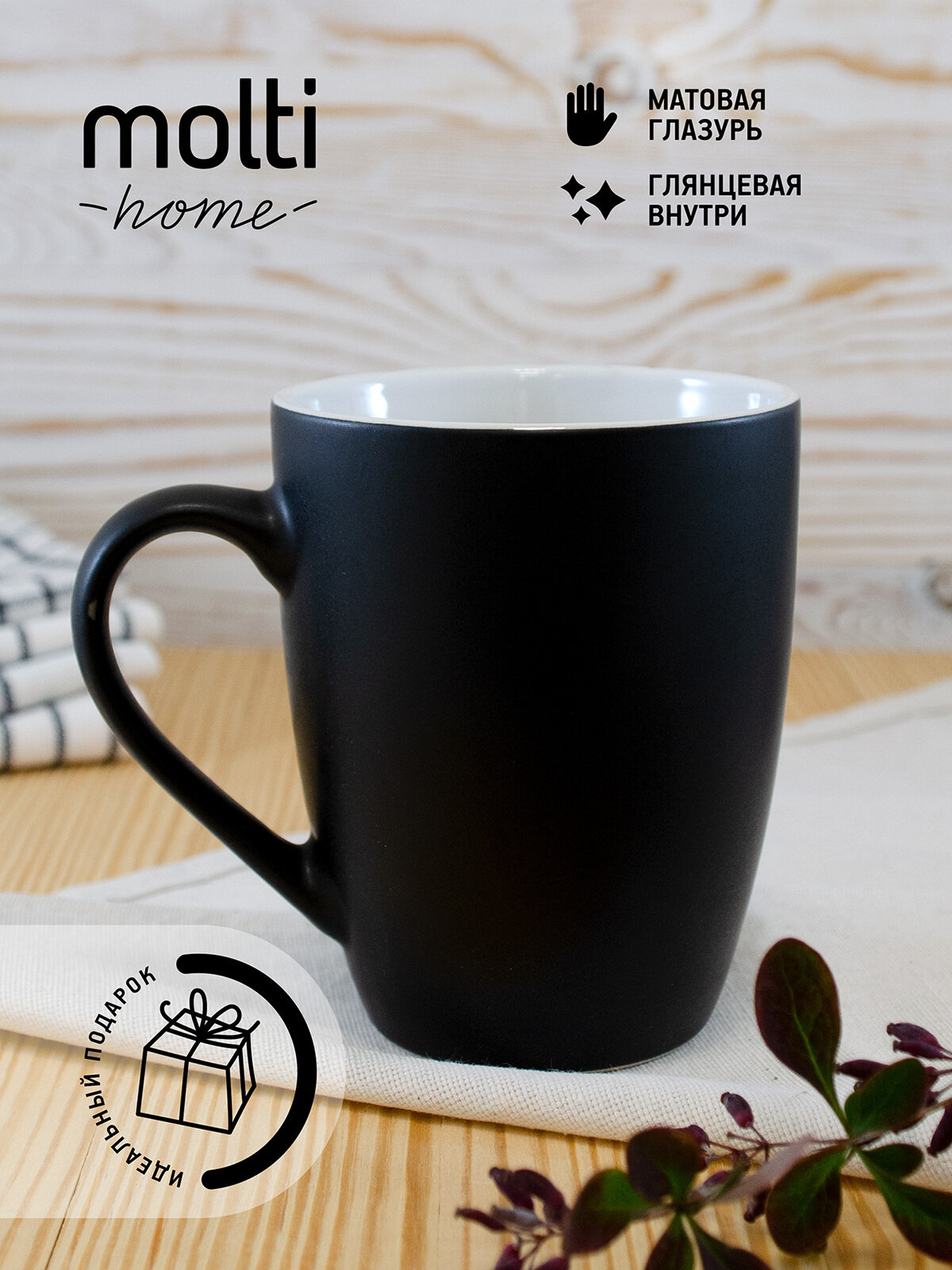 СохранитьКружка матовая для чая и кофе molti Bright Tulip двухцветная чашка подарочная 340 мл, черная с белым интересное:
