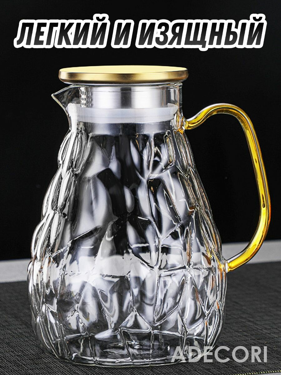 Кувшин стеклянный с крышкой для воды и напитков из жаропрочного стекла Шампань, 1900 мл (графин, чайник, заварник) ADECORI