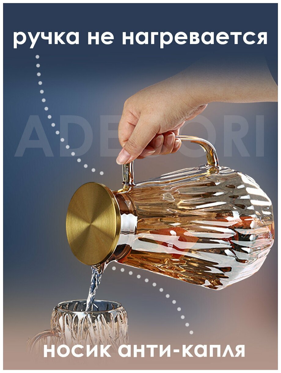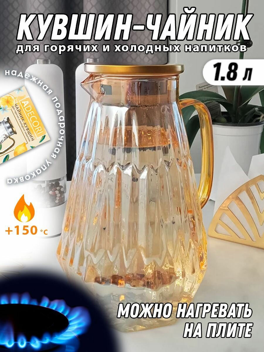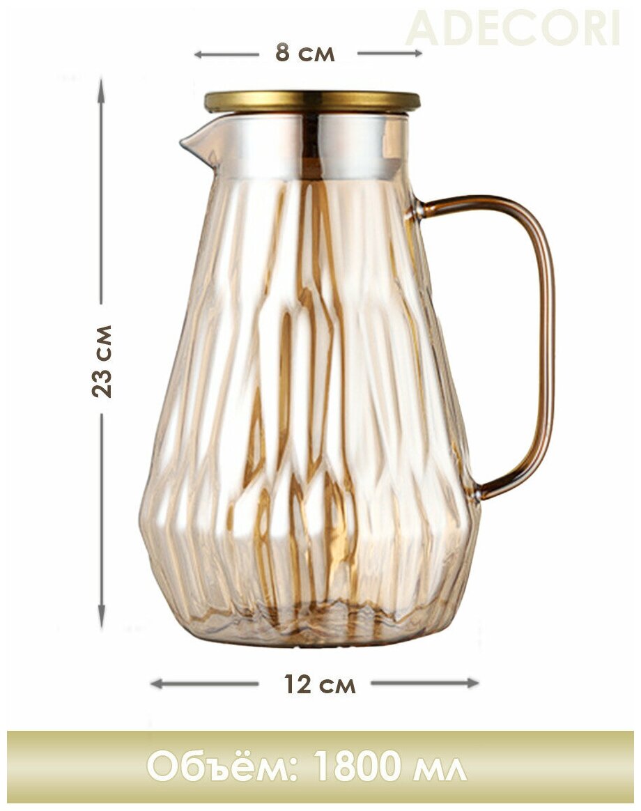 Кувшин стеклянный с крышкой для воды и напитков из жаропрочного стекла Шампань, 1900 мл (графин, чайник, заварник) ADECORI