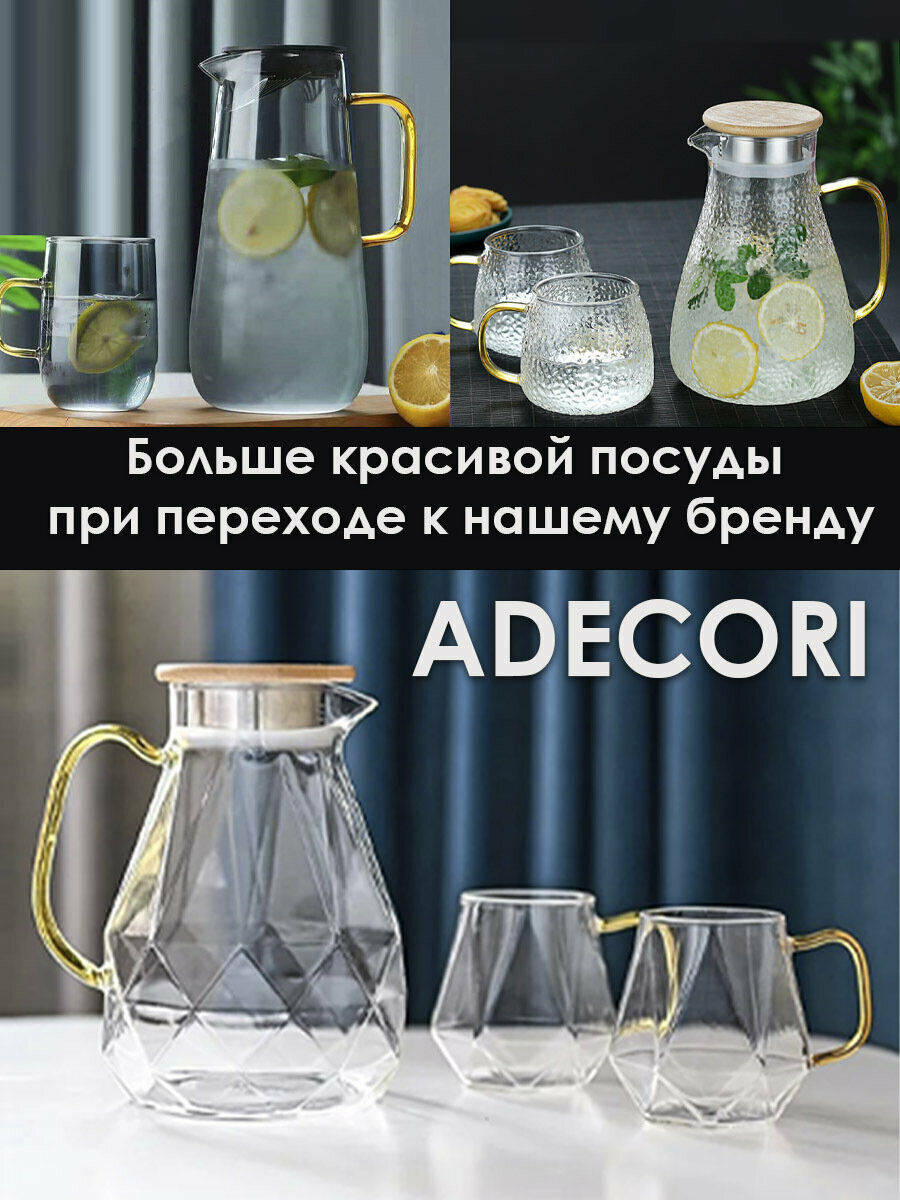 Кувшин стеклянный + 4 кружки (для воды и напитков жаропрочные из боросиликатного стекла), Амели, ADECORI