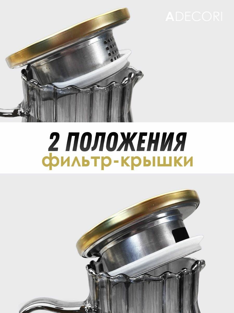Купить Кувшин для воды для напитков с фильтр-крышкой/ графин для воды/ чайник стеклянный жаропрочный из боросиликатного стекла, Селин, 1800 мл, ADECORI