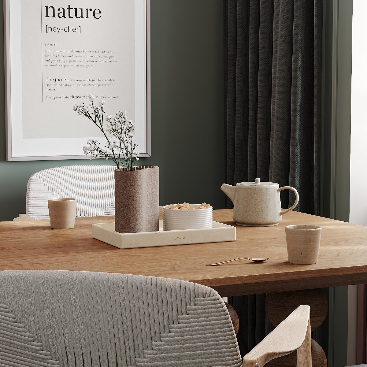 Поднос кухонный Emily L 21x21 см, декоративная подставка, бетон, кремовый матовый
