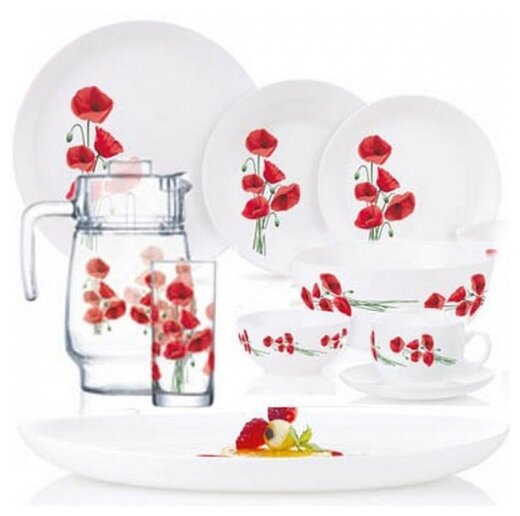 | Состав набора | блюдо, блюдце, кружка, крышка, кувшин, пиала, салатник, стакан, тарелка десертная, тарелка обеденная, тарелка суповая, чашка |
