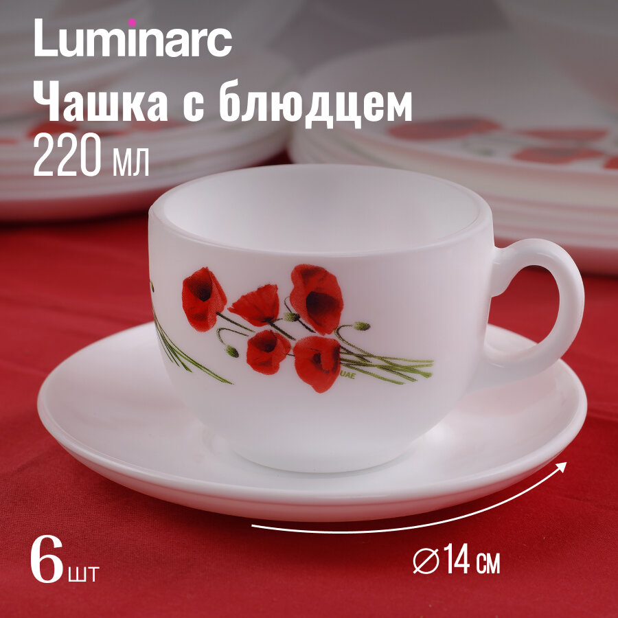 Luminarc Чайный стеклянный набор Luminarc «Идиллия», 12 предметов: кружка 265 мл, 6 шт, блюдце d=13 см, 6 шт, цвет лилак