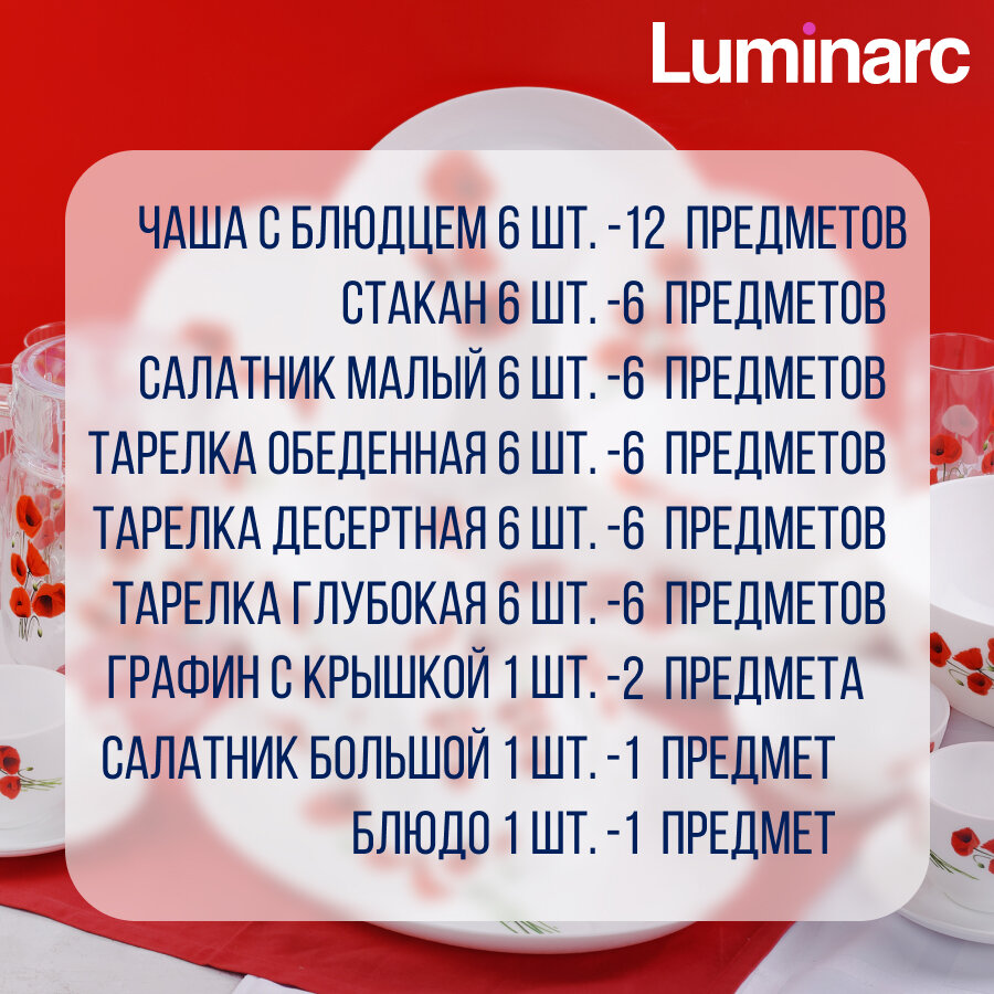 Набор посуды Luminarc "CARINA GISMON", 44 шт, стекло, 6 персон,