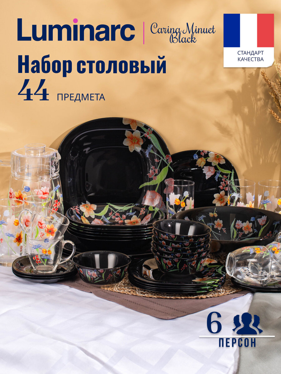 СохранитьНабор столовой посуды на 6 персон Luminarc CARINA MINUET BLACK 44 предмета, интересное: