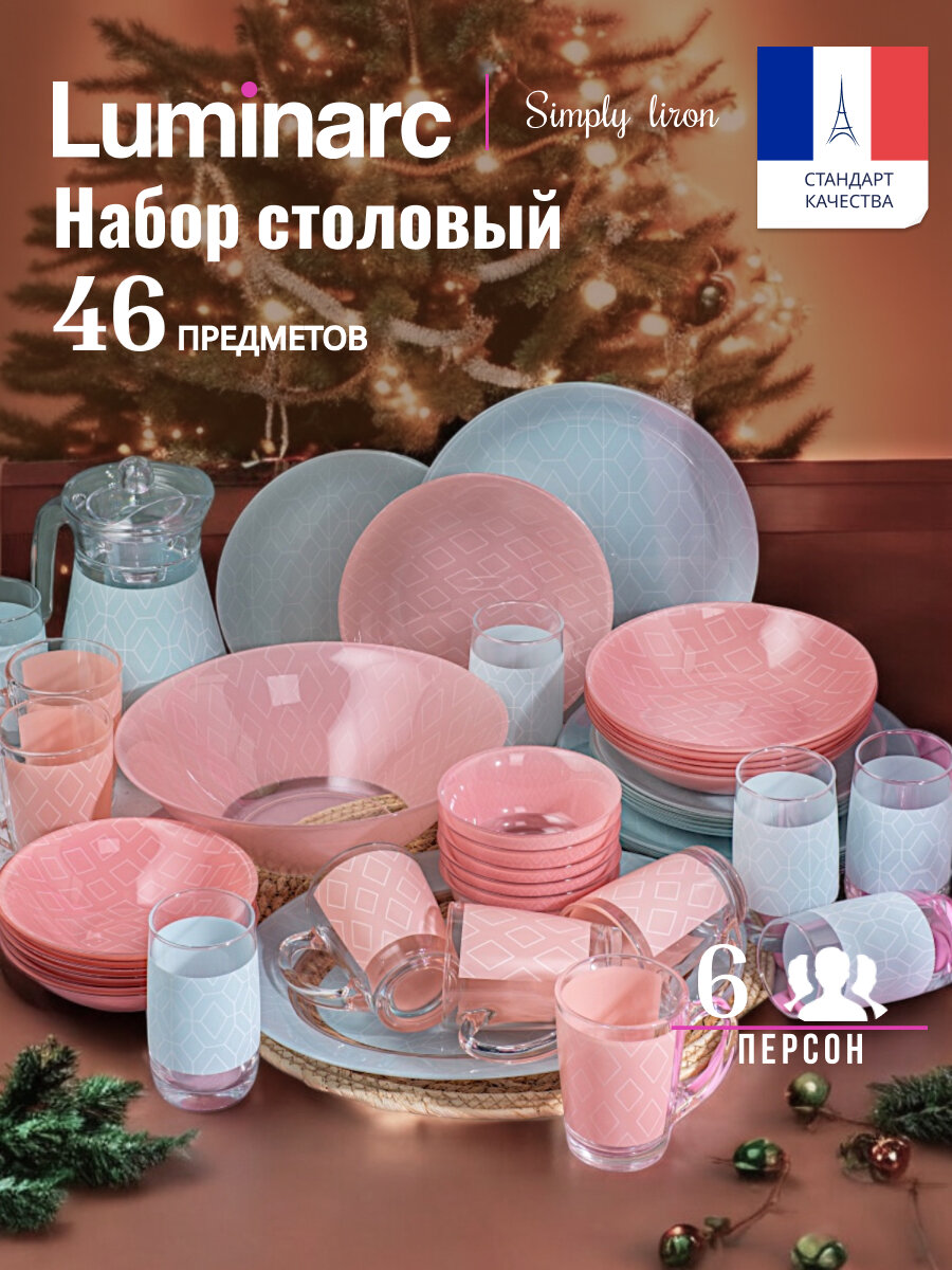 Столовый набор Luminarc DIWALI FRESCURA PINK Q7907, 46 предметов