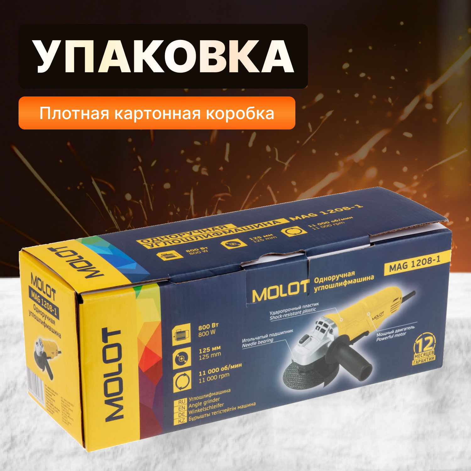 Одноручная углошлифмашина MOLOT MAG 1208-1 в кор. 800 Вт, 125 мм, 11000 об/мин (MAG120810027)