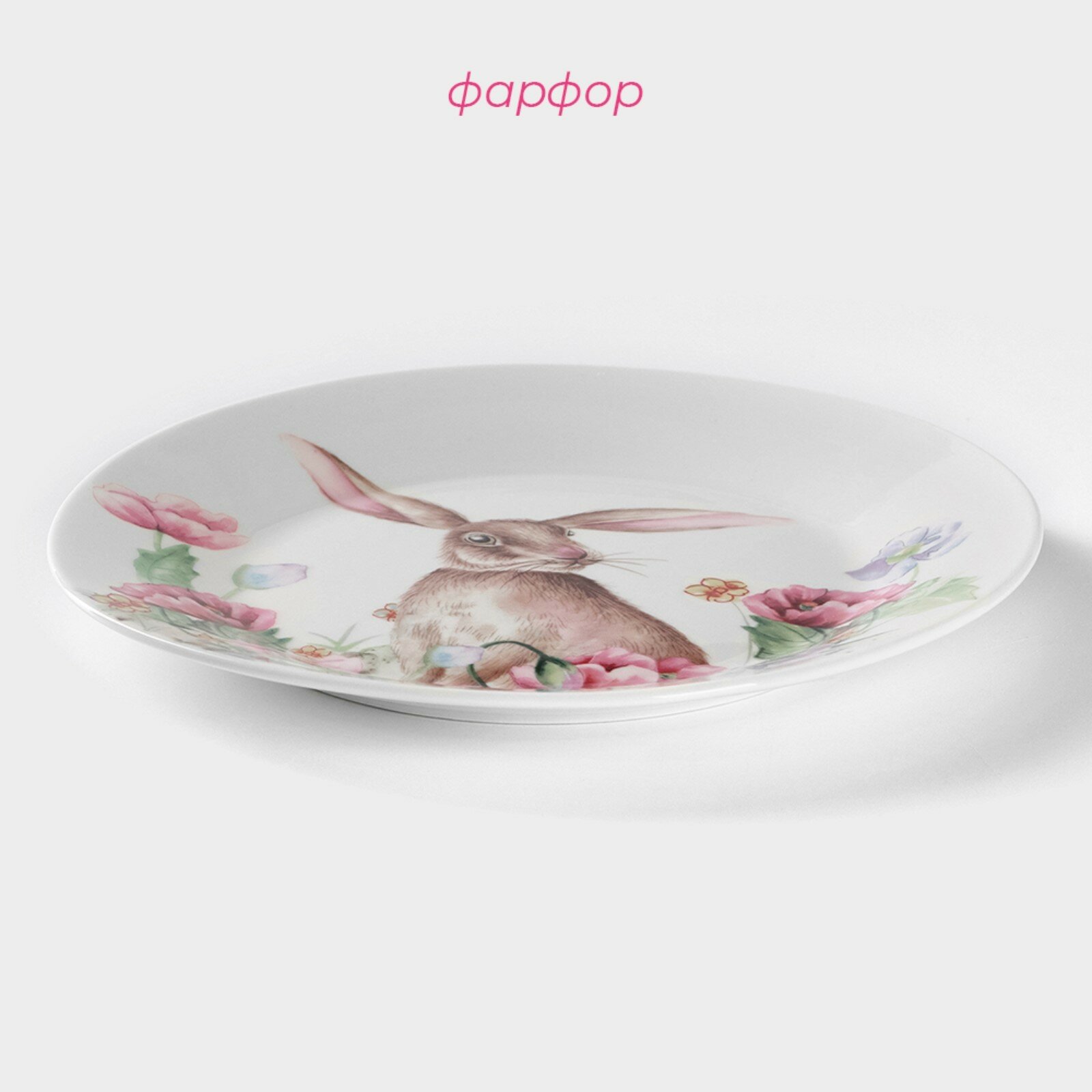 Тарелка обеденная фарфоровая Доляна «Зайка», плоская, d=20,3 см интересное: