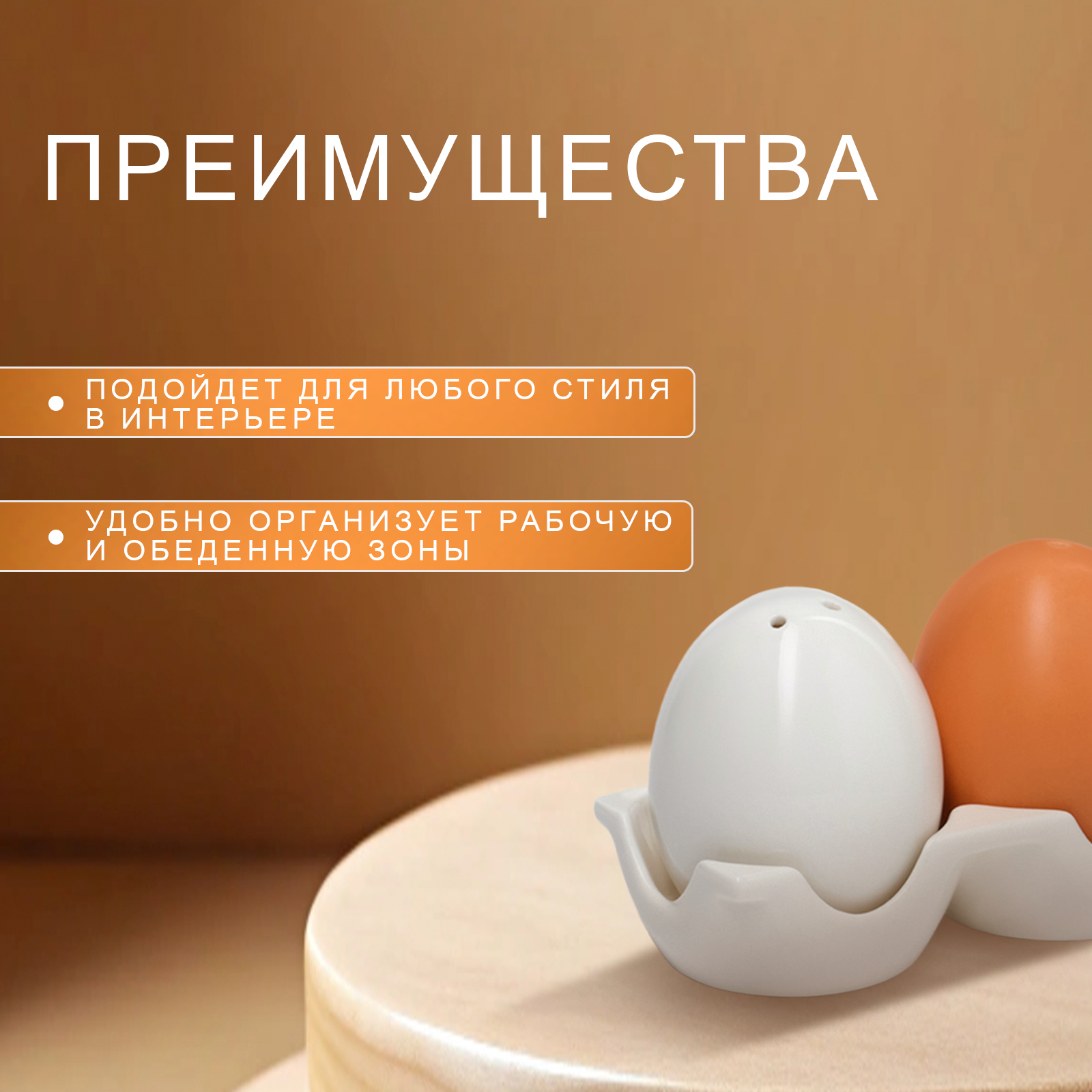 Набор для специй фарфоровый BellaTenero «Яйца», 3 предмета: солонка, перечница, подставка, цвет белый и бежевый интересное:
