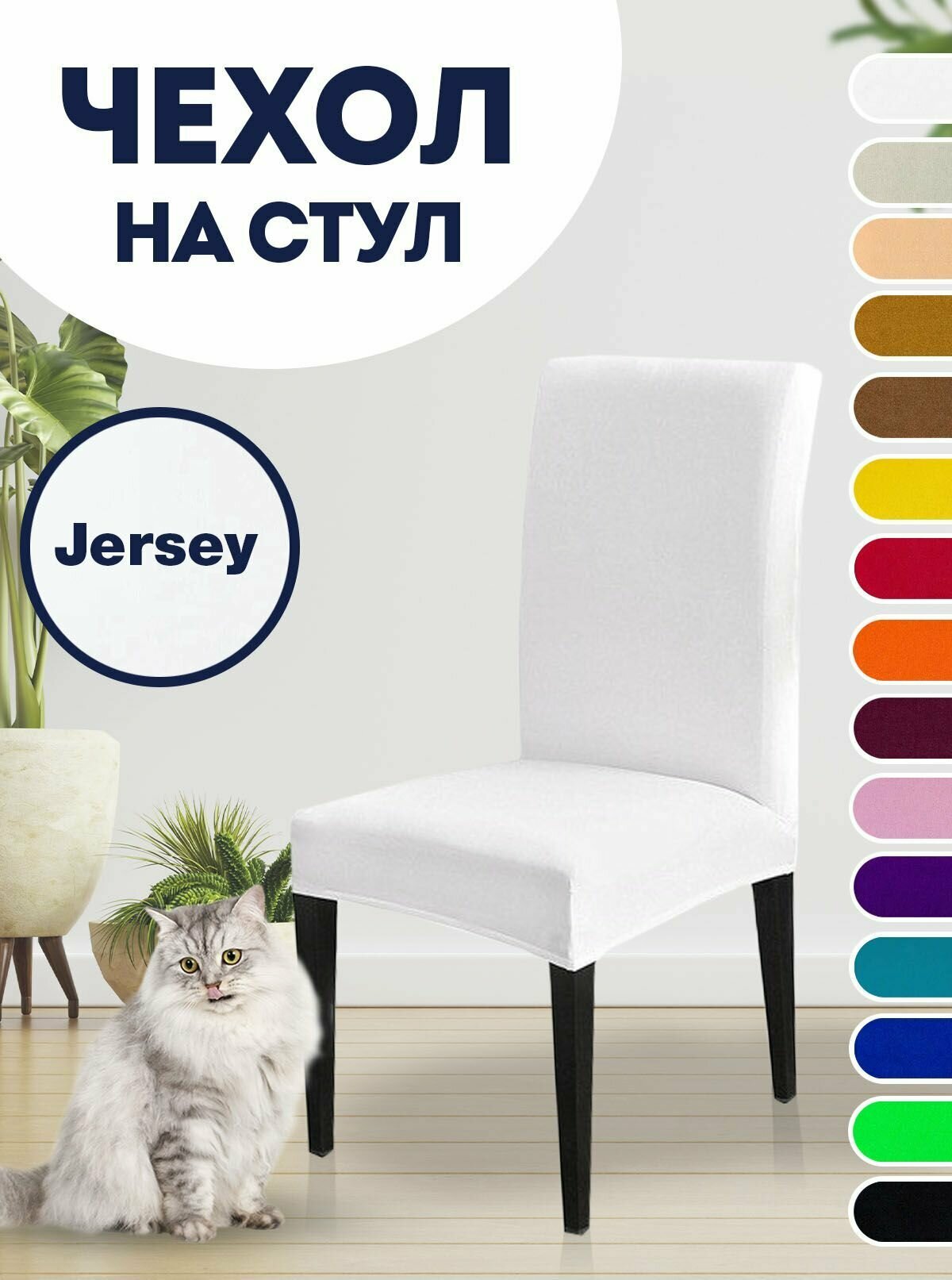 Чехол LuxAlto на стул со спинкой Jersey универсальный Чехол LuxAlto, Белый, 4 шт.