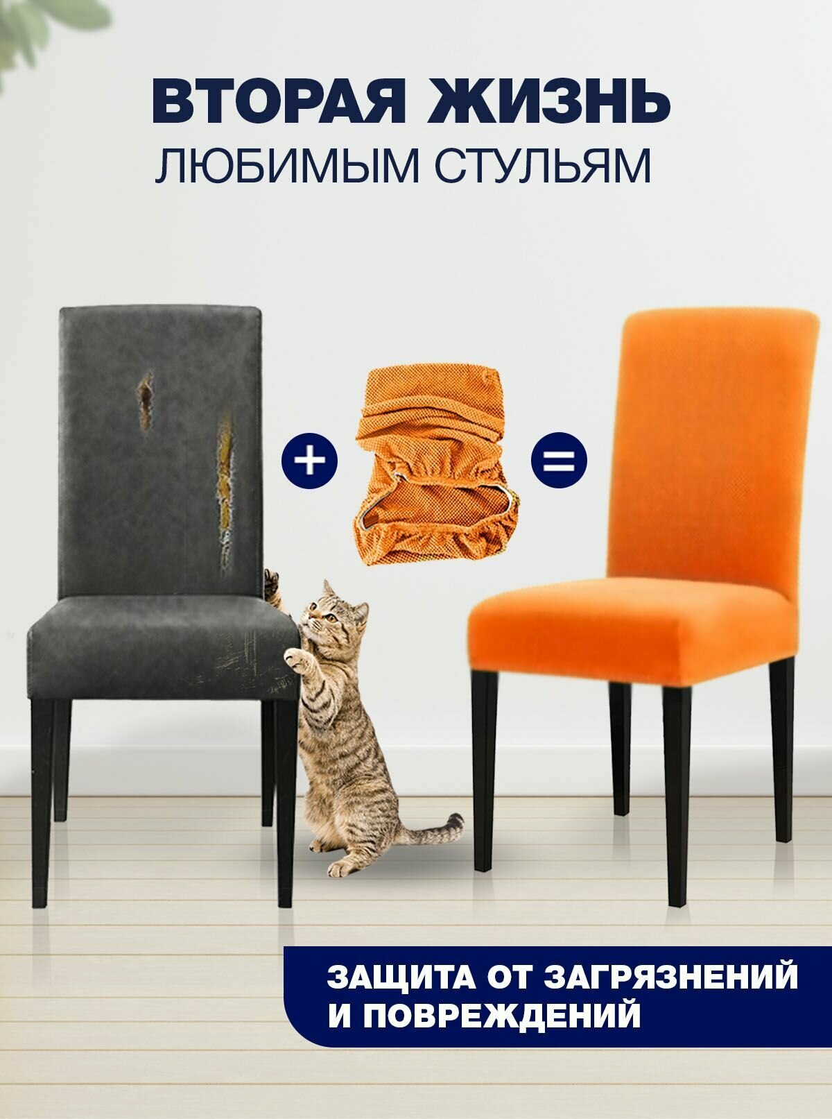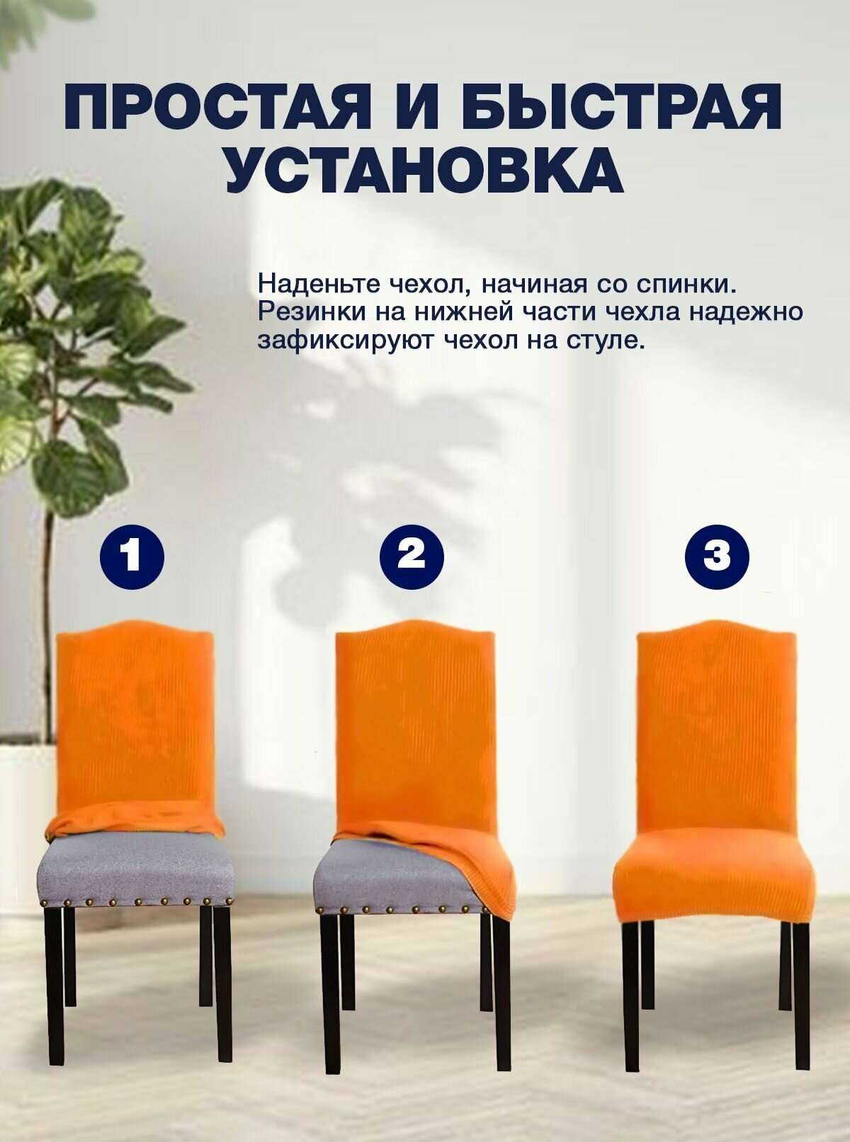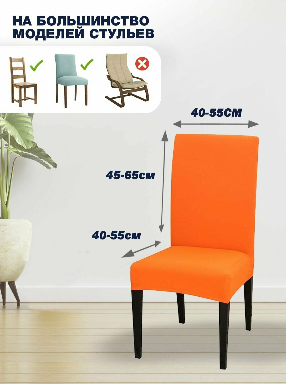 Чехол на стул, чехол для стула со спинкой, чехлы для стульев, Коллекция "Jersey", Оранжевый, Комплект 2 шт.
