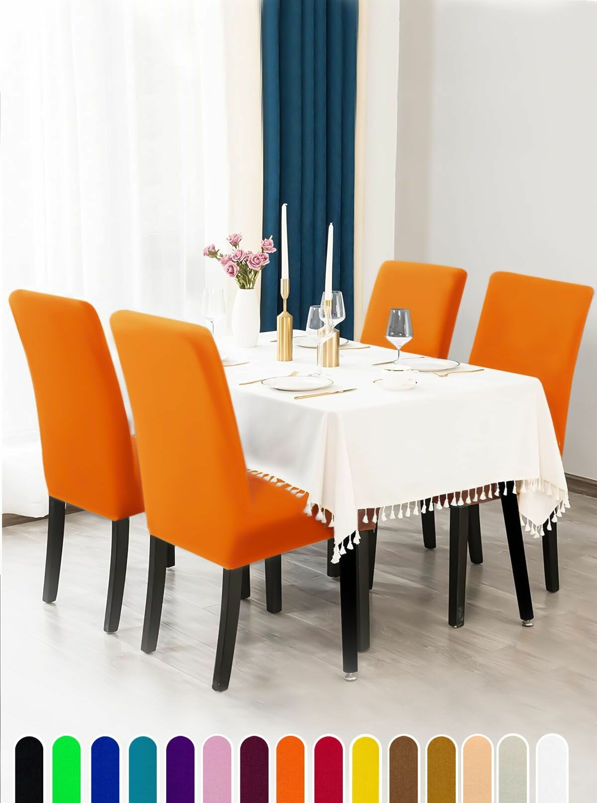 Чехол на стул, чехол для стула со спинкой, чехлы для стульев, Коллекция "Jersey", Оранжевый, Комплект 4 шт.