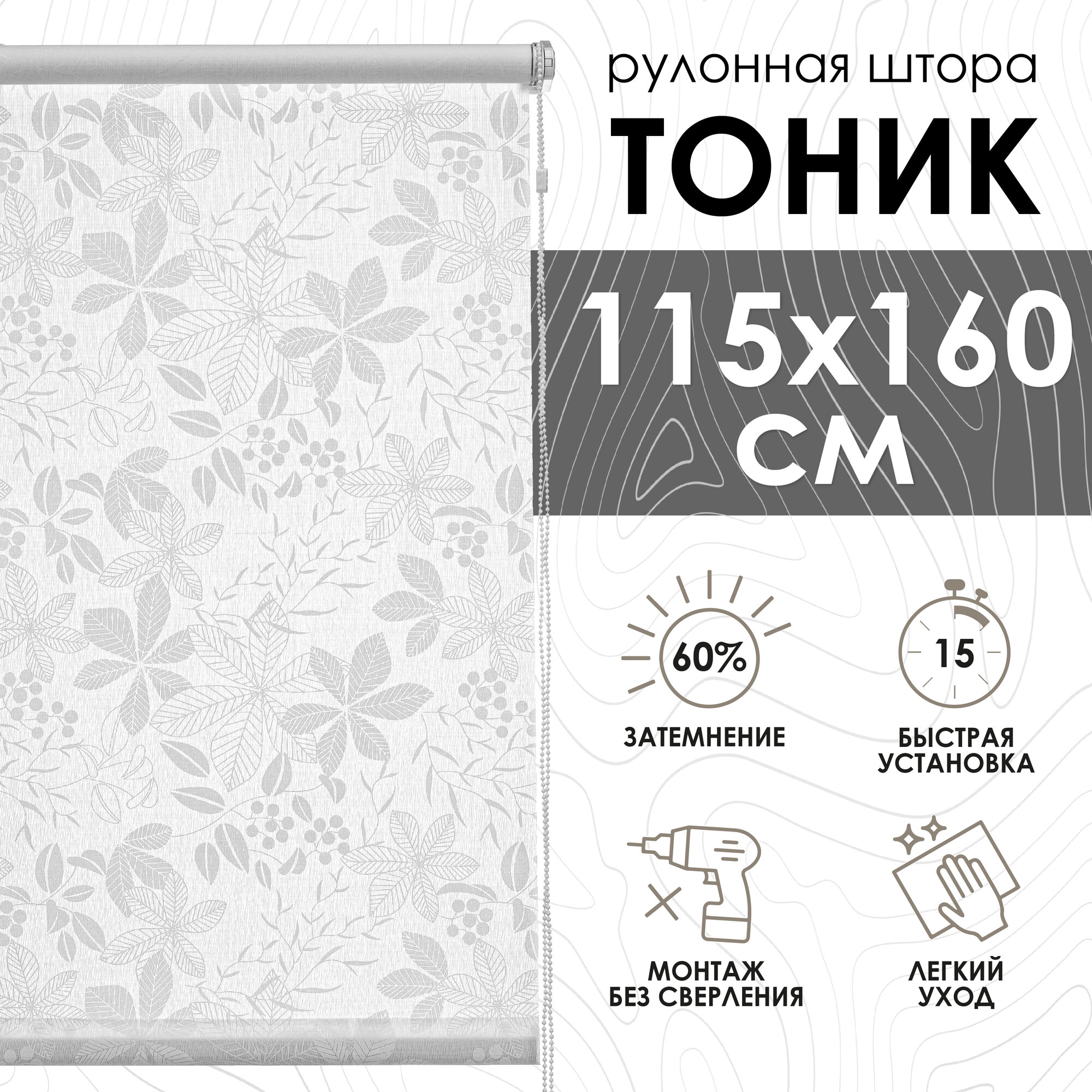 Рулонные шторы Тоник, "Эскар", серый, 115х160 см