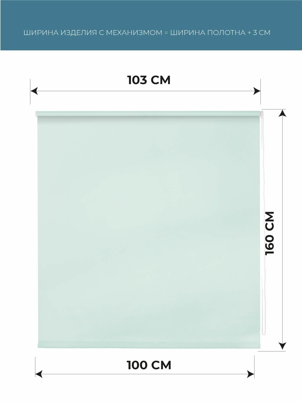 Купить Рулонные шторы однотонные 100 см x 160 см Свежая мята Плайн DECOFEST (Мини)