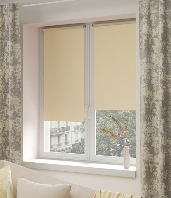 Рулонная штора "Лайт" шампань / Рулонные шторы на окна не блэкаут / Жалюзи на окна / Шторы не блэкаут