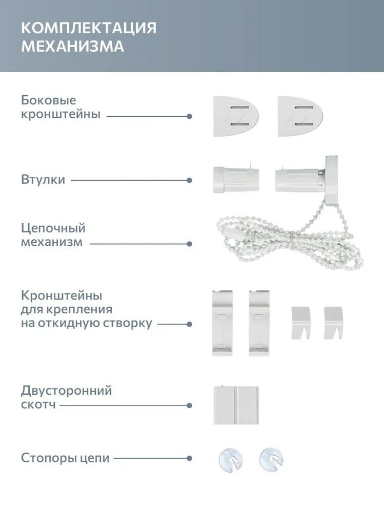 | Комплектация | Рулонная штора - 1 шт., монтажный комплект, инструкция |
