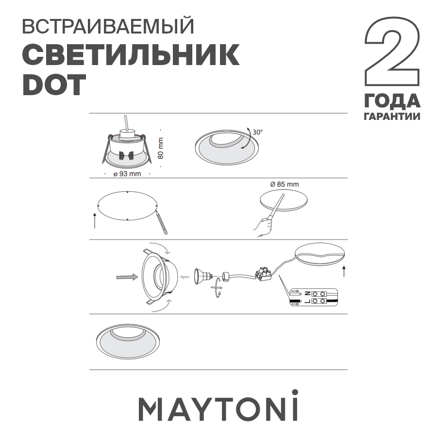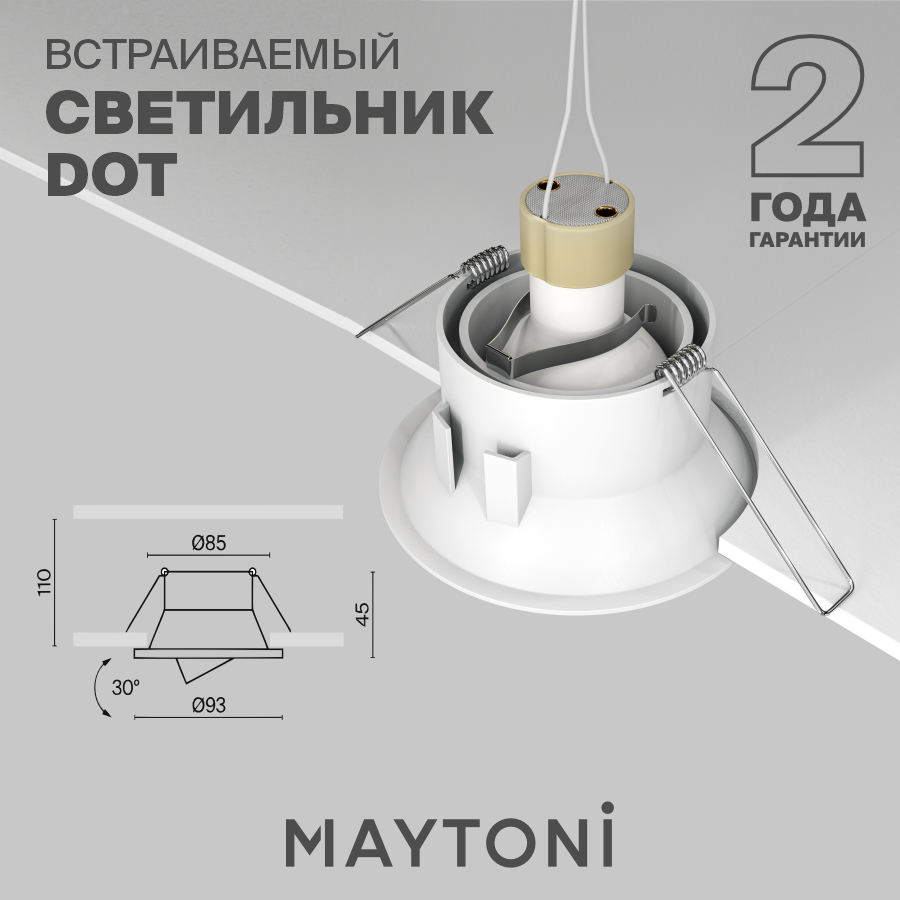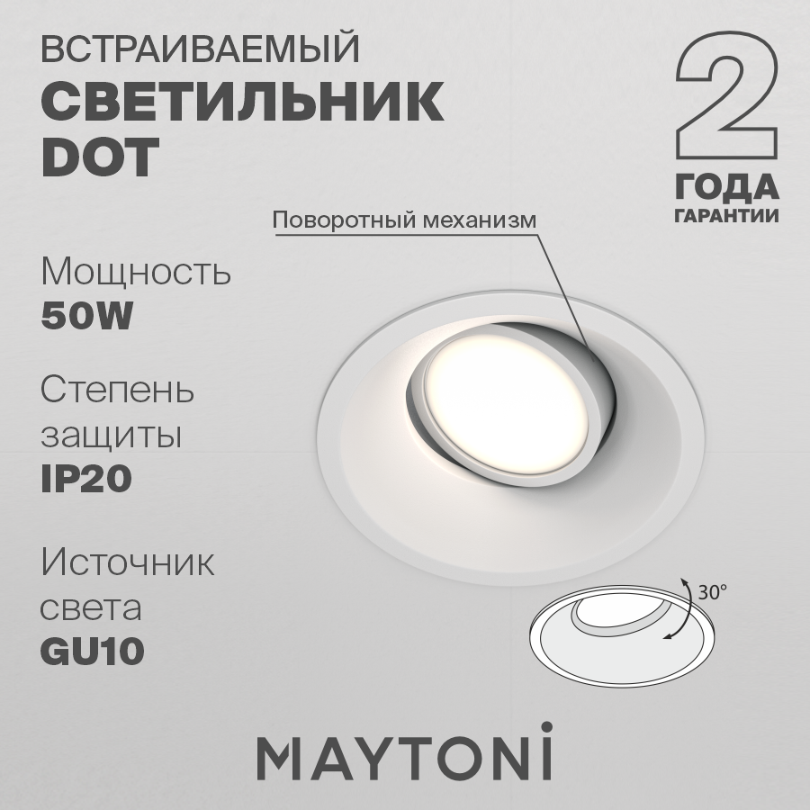 Светильник встраиваемый GU10 50 Вт 93 мм матовый IP20 Maytoni Dot ДВО (DL028-2-01W) белый
