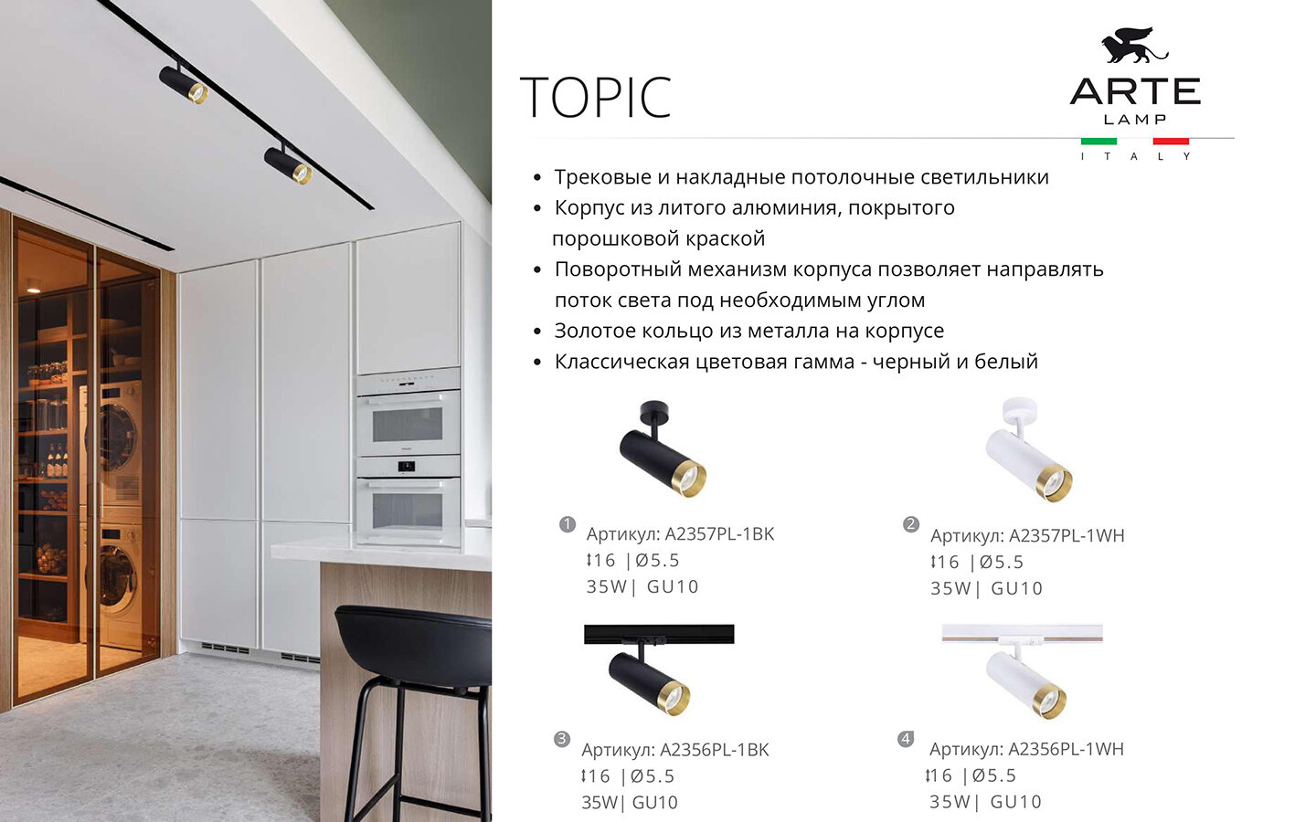 СохранитьСпот Arte Lamp TOPIC A2357PL-1BK / GU10 / 1х35Вт / IP20 / чёрный интересное: