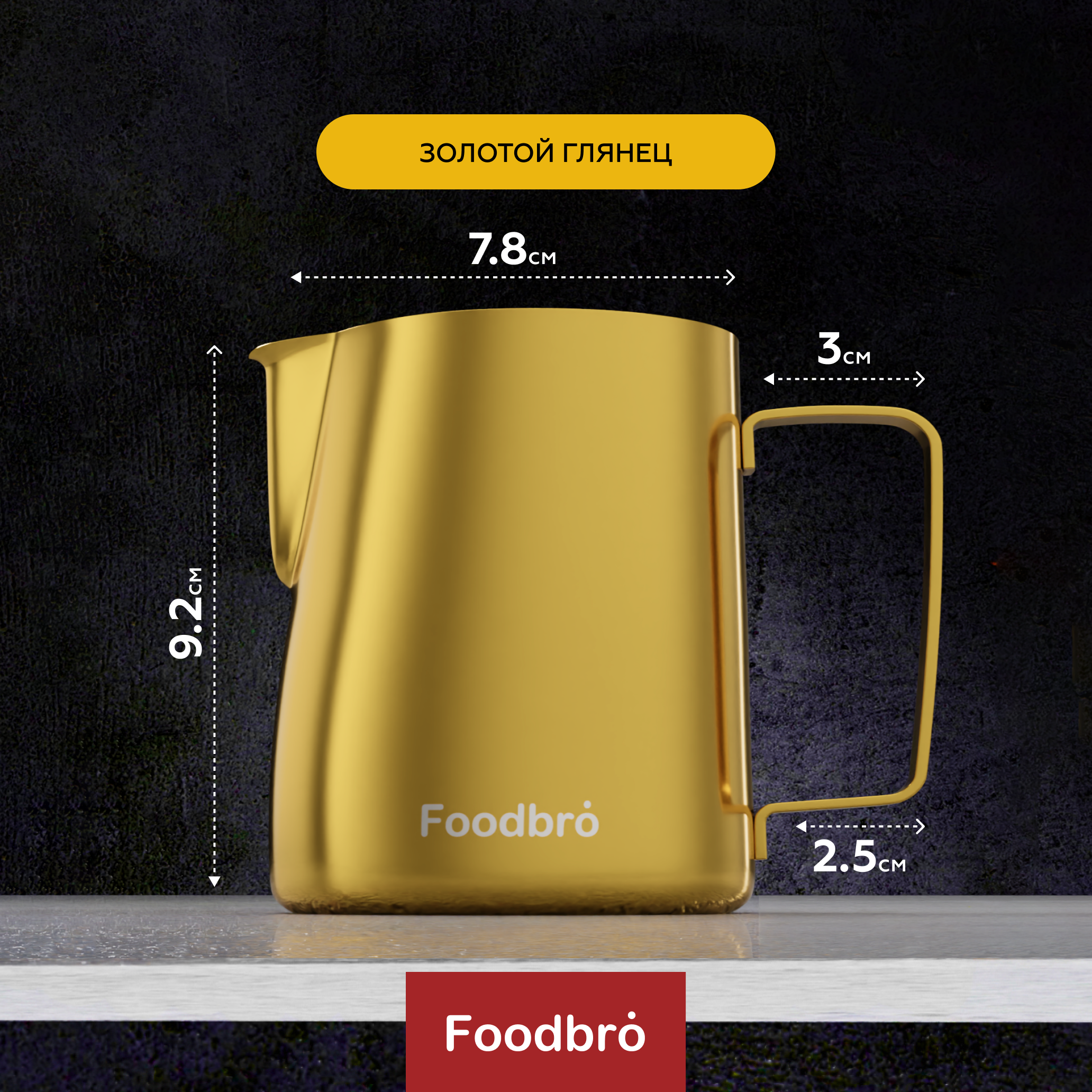 Питчер Молочник Foodbro с мерной шкалой 350 мл (Серебристый матовый)